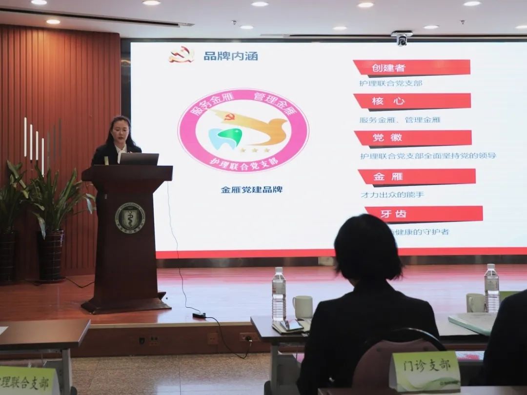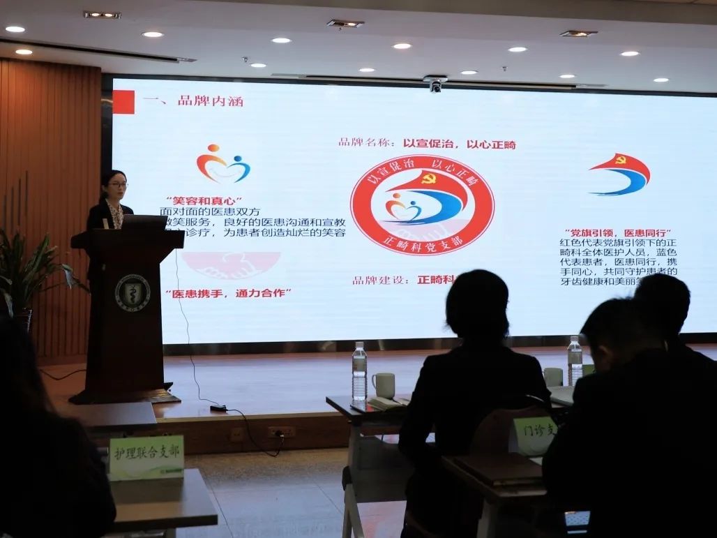 评审会上,16位党支部书记依次登台亮相,通过图文并茂的PPT娓娓道来。他们围绕品牌内涵、形象标识、创建目标、创新举措、取得的成效等维度,集中进行汇报。这次评审会体现了党建工作与业务工作、支部建设与科室建设深度融合,也是促进党支部之间的交流和学习,推广工作经验做法,以提高党建工作的整体水平的重要举措。汇报结束后,程毅书记进行了精彩的点评,他充分肯定了医院党委开展党支部品牌创建工作,以党建品牌创建促进业务提升,是创新党建工作载体,激发基层党建工作生机和活力的务实举措。16个党支部开展党建品牌各有特色、真正解决科室问题、富有成效。他指出,党建品牌建设只有进行时、没有完成时,各支部要开动脑筋、勇于创新,互学互鉴、比学赶超,融合业务、突出实效,持续巩固创建成果,让支部品牌“叫得响、传得开、立得住”。下一步,口腔医院党委将不断深化“党建+”特色品牌工作,逐步形成具有医院特色的党建品牌矩阵体系,达到党建引领促发展,品牌示范树先锋的目标。