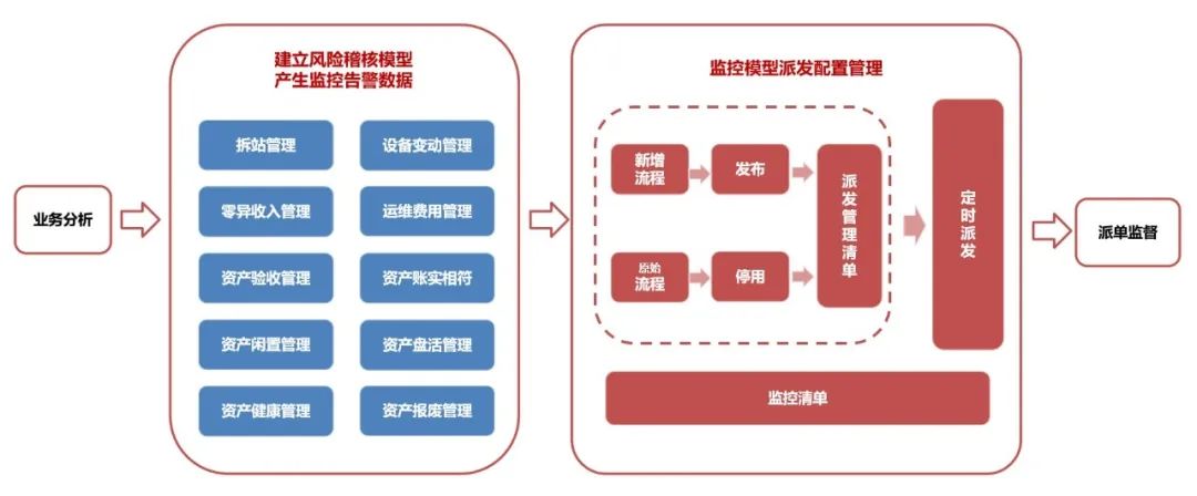 资产运营监控依托大数据手段,聚焦站址运营和资产运营,坚持问题导向,抓实站址维系保有、五费管理、“零异”站址管理、盘活利旧闲置资产、精准更新改造,建模分析发现问题和短板,通过工单管理、督办升级等流程电子化流程,强化问题的处理和短板的提升,实现资产运营由“数据”和“系统” 驱动,提升资产运营的效率和效益,通过数字化业务监督及审计、纪检联动,提升资产运营风险防范能力。