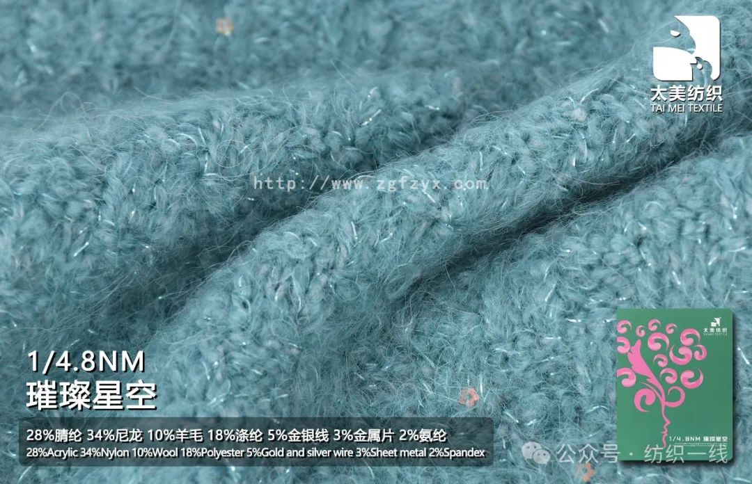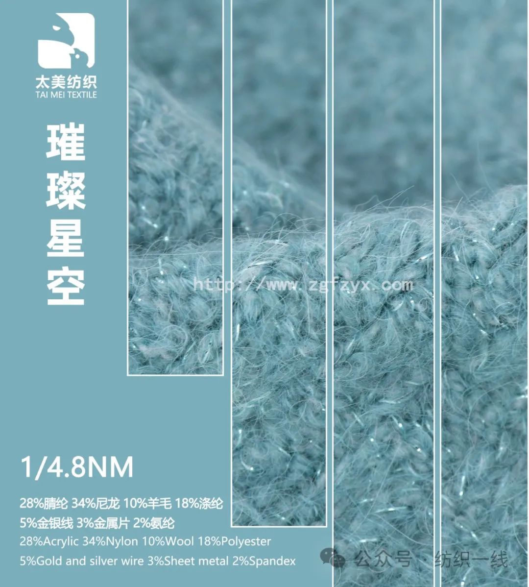 广东太美纺织品公司具有研发、生产、营销、服务一体化商业集团.目前色纺纱是一款能实现白胚、染色所不能达到的朦胧立体效果和质感,能在同一根纱线上进行多色彩展示。采用“先染色、后纺纱”的新工艺,相比传统工艺节水50%以上,可以最大程度地控制成衣色差,并且层次感更强。使用过程中几乎是0污染。受到毛织客户广泛认可。更符合低碳环保要求.满足国内外大小型企业的需求订购,保持良好关系的强大供应链资源。