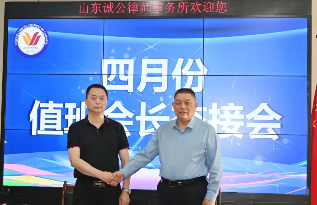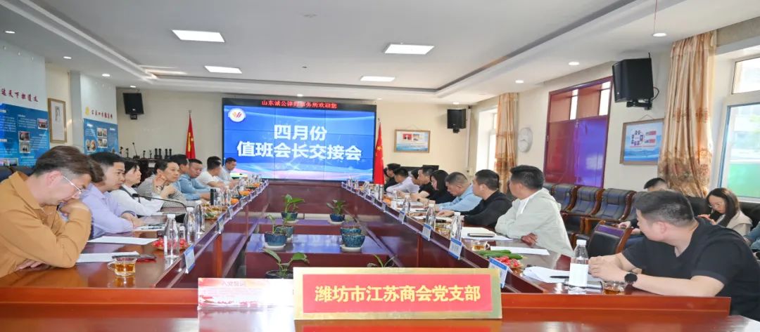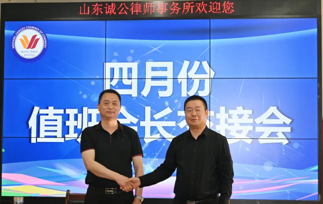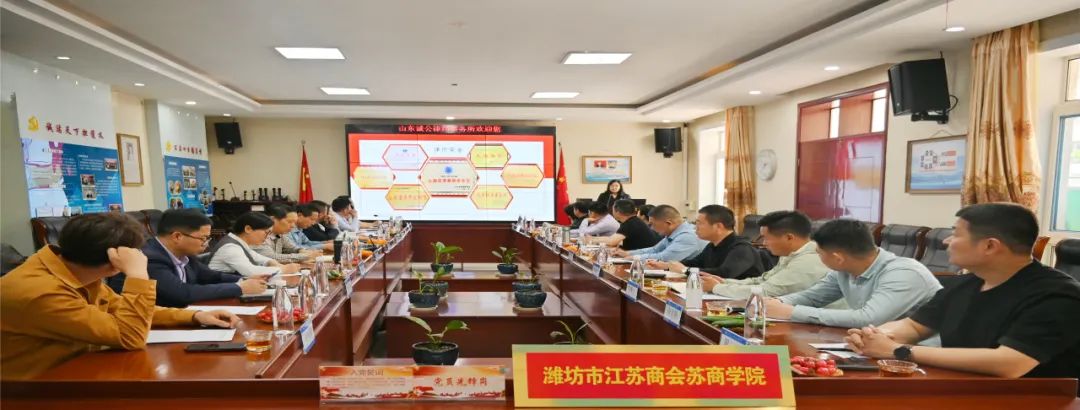 4月28日,江苏商会在山东诚公律师事务所召开值班会长交接会暨苏商学院四月份授课。会议由秘书长王国强主持。