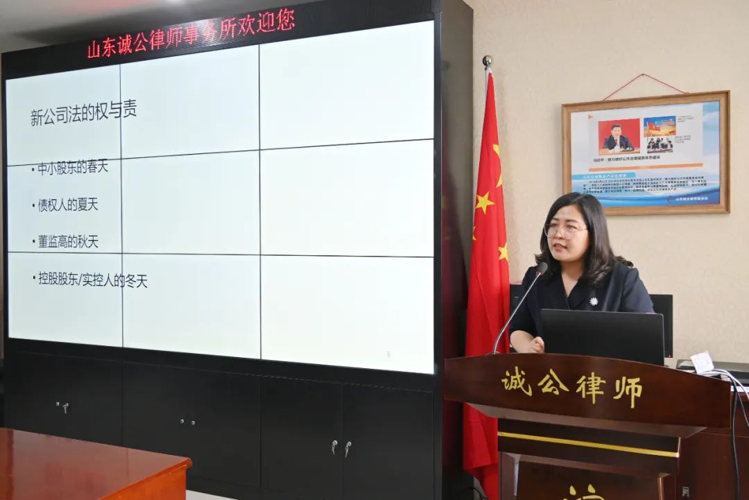 商会法律顾问、诚公律师事务所党支部书记周建珍讲解《新公司法对中小微企业的影响》。