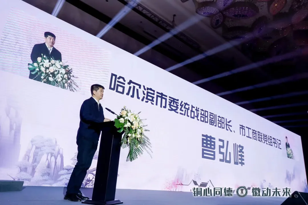 曹弘峰代表市工商联最后致辞,他对商会建设提出三点希望:一是强化政治引领,坚持正确方向,商会之立,旗帜领航;二是加强组织建设,提升服务质量,商会之强、服务为本;三是承担社会责任、助推经济发展;商会之远,在于奉献。相信在叶有林会长的带领下,铜陵商会必将弘扬徽商精神,团结带领广大会员坚定信心、把握机遇、踔厉奋发,为助力铜陵和哈尔滨两地实现高质量发展贡献智慧和力量。