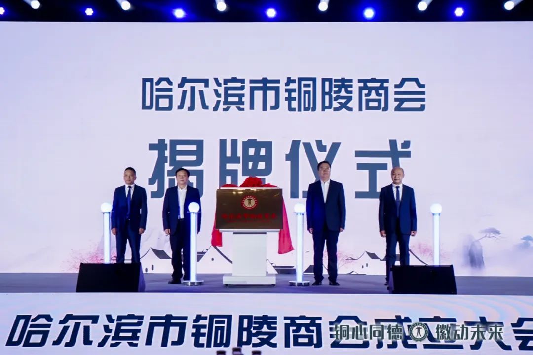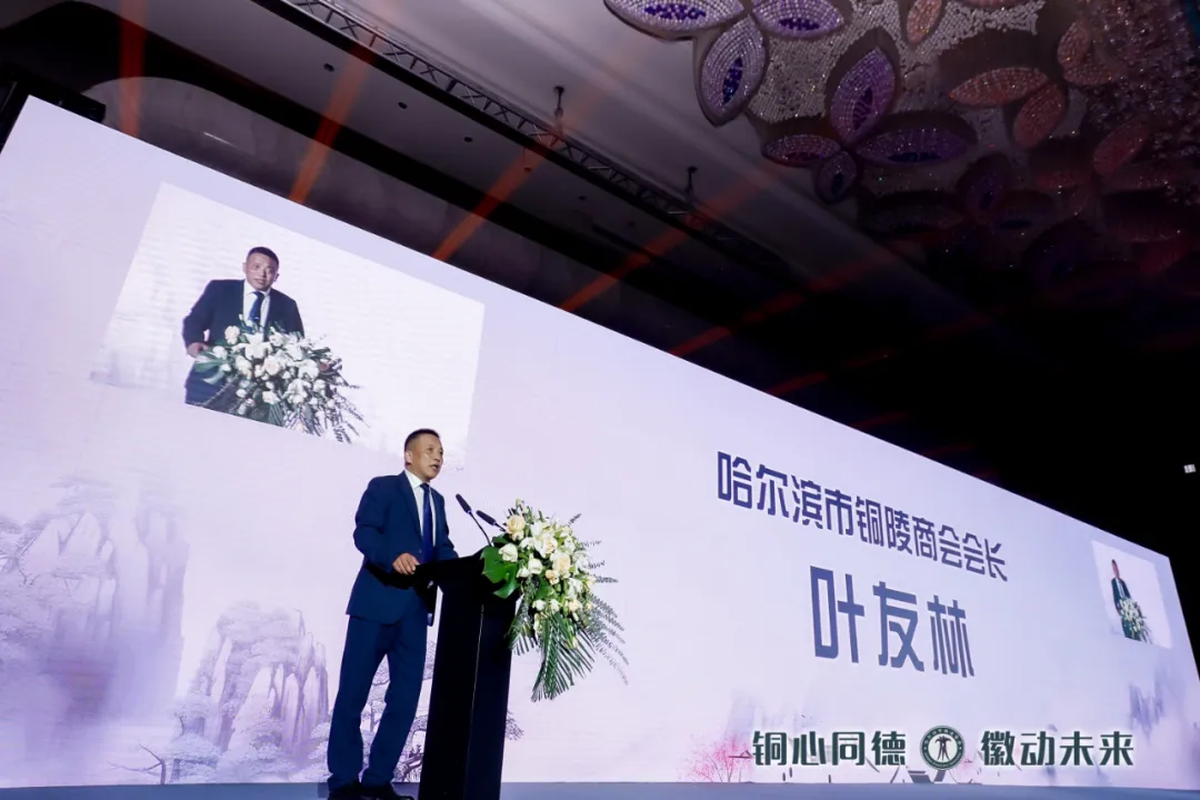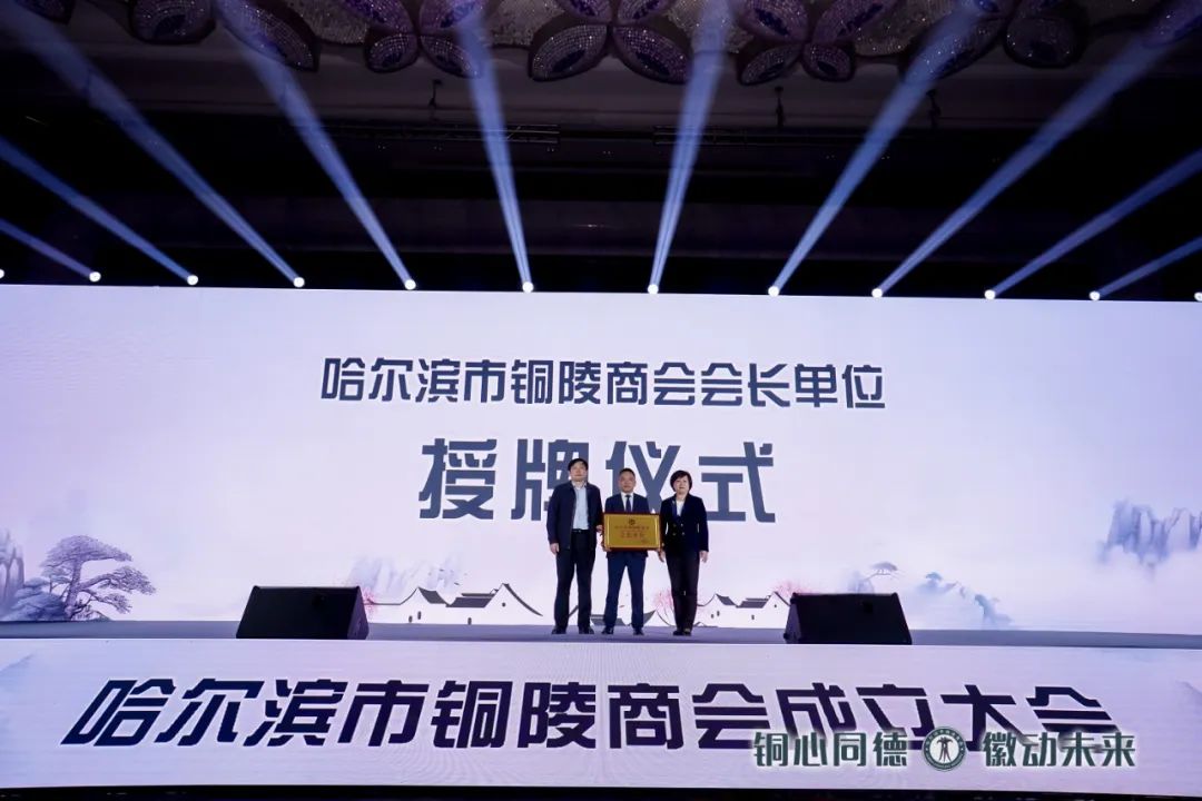 哈尔滨市铜陵商会会长叶友林作表态发言,商会成立后将坚持以习近平新时代中国特色社会主义思想为指导,深入学习贯彻党的二十大精神,坚持党建引领,建立亲清、政商关系,以服务会员,服务社会,服务政府为办会宗旨,助力铜哈两地经济繁荣发展。