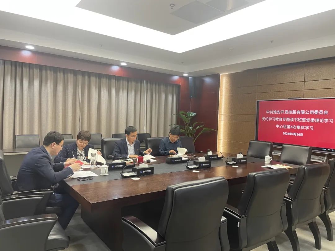 4月25日至26日,淮安开发控股有限公司开展党纪学习教育专题读书班暨党委理论学习中心组学习会,围绕新修订的《中国共产党纪律处分条例》第一编“总则”部分,开展集中研讨交流。会议由公司党委书记、董事长徐铁主持,公司领导班子参加。