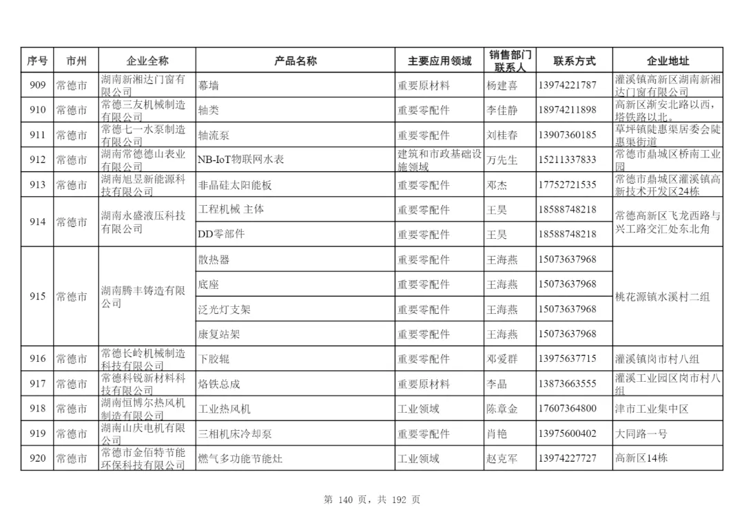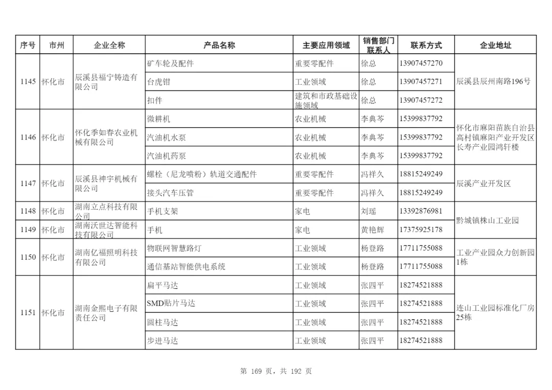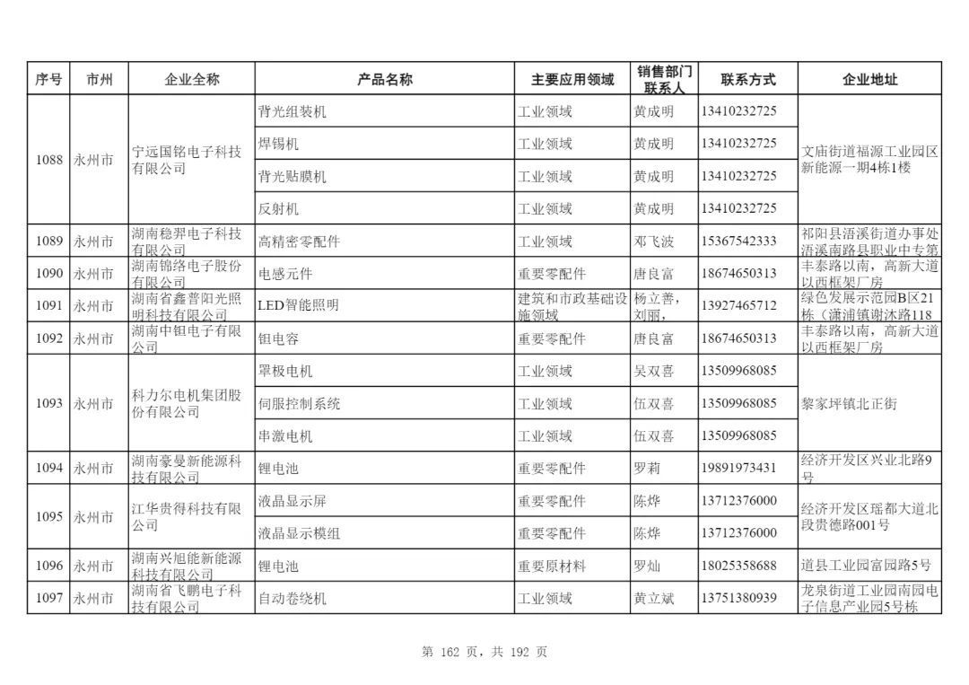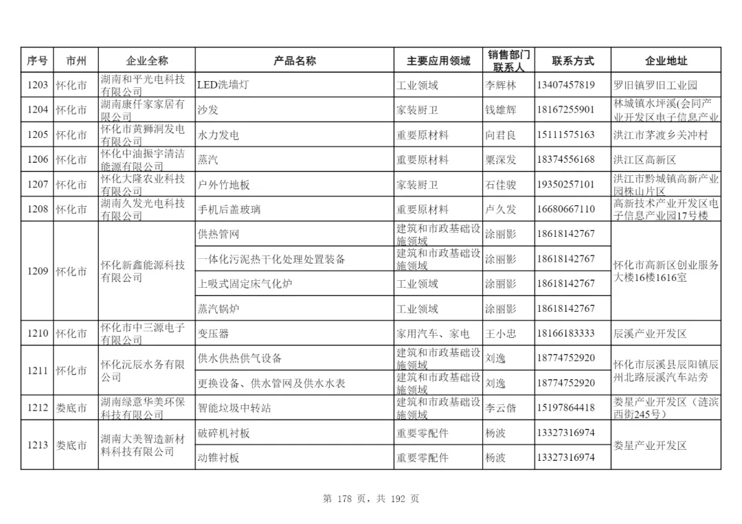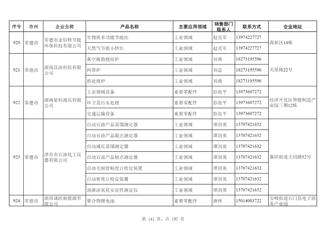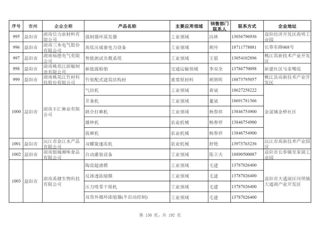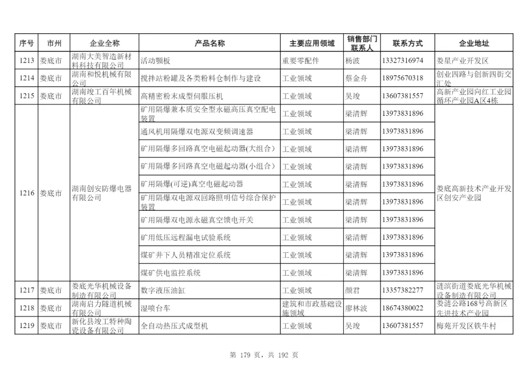 序号 | 市州 | 企业全称 | 产品名称 | 主要应用领域 | 销售部门 | 联系方式 | 企业地址 |