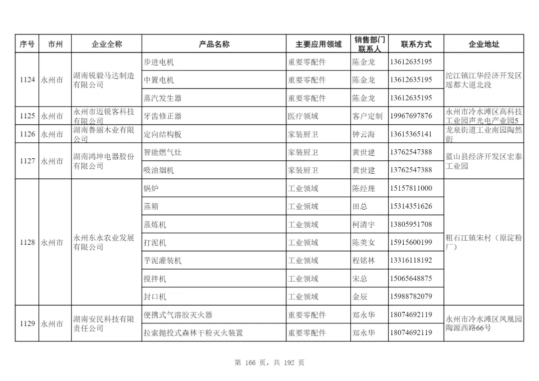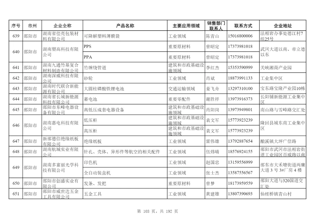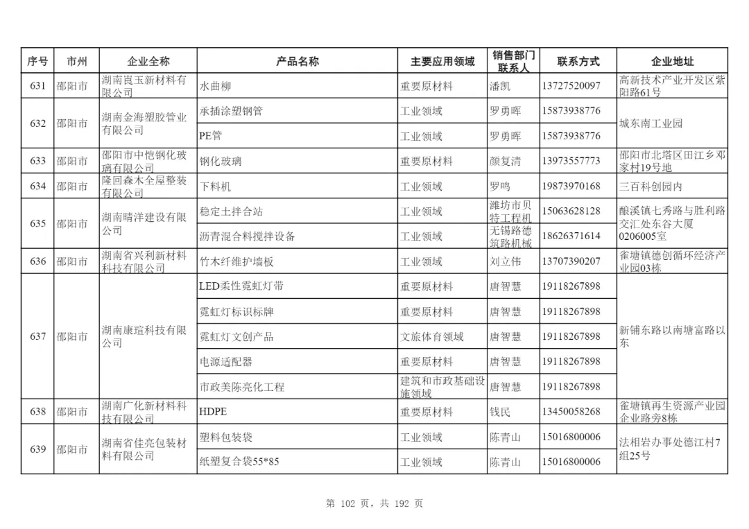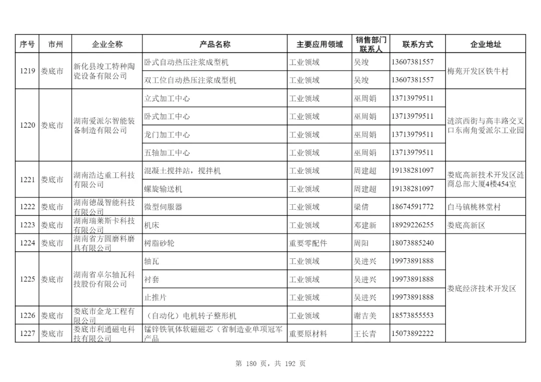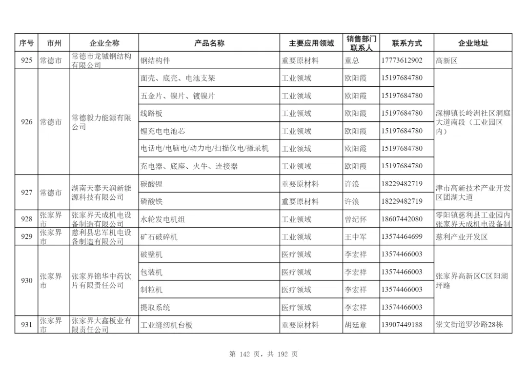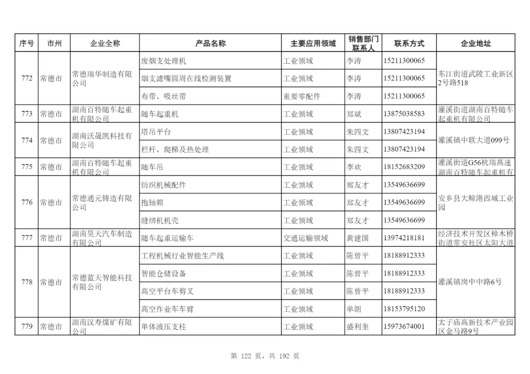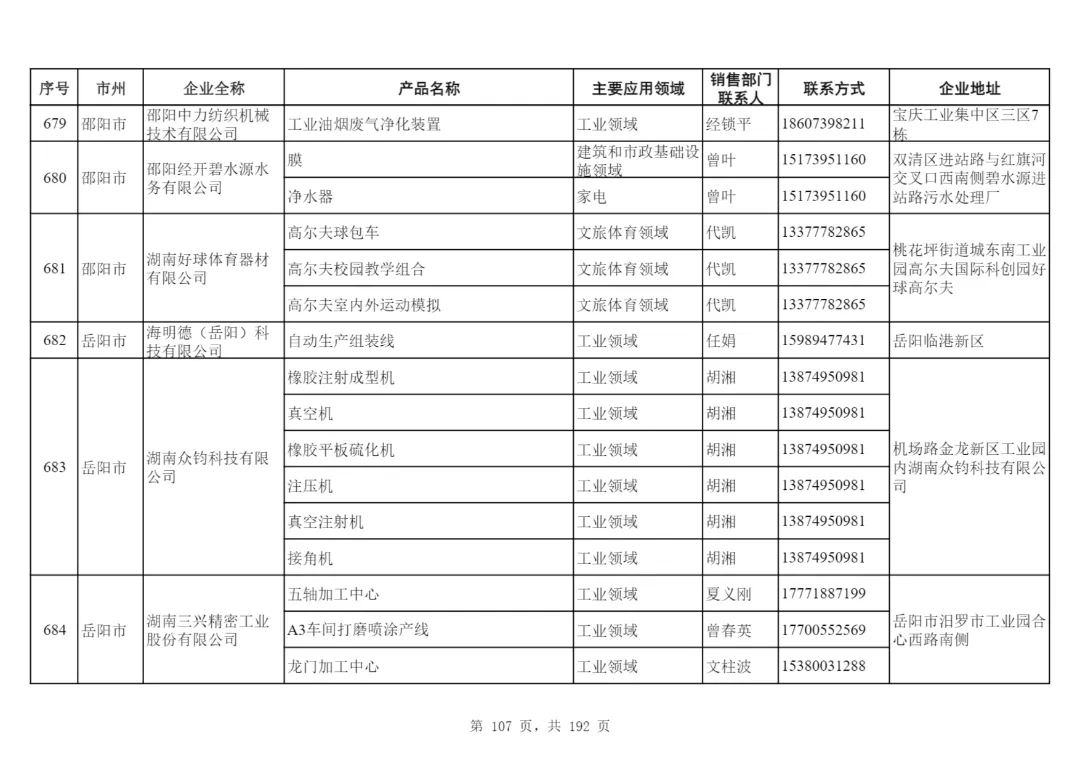 序号 | 市州 | 企业全称 | 产品名称 | 主要应用领域 | 销售部门 | 联系方式 | 企业地址 |