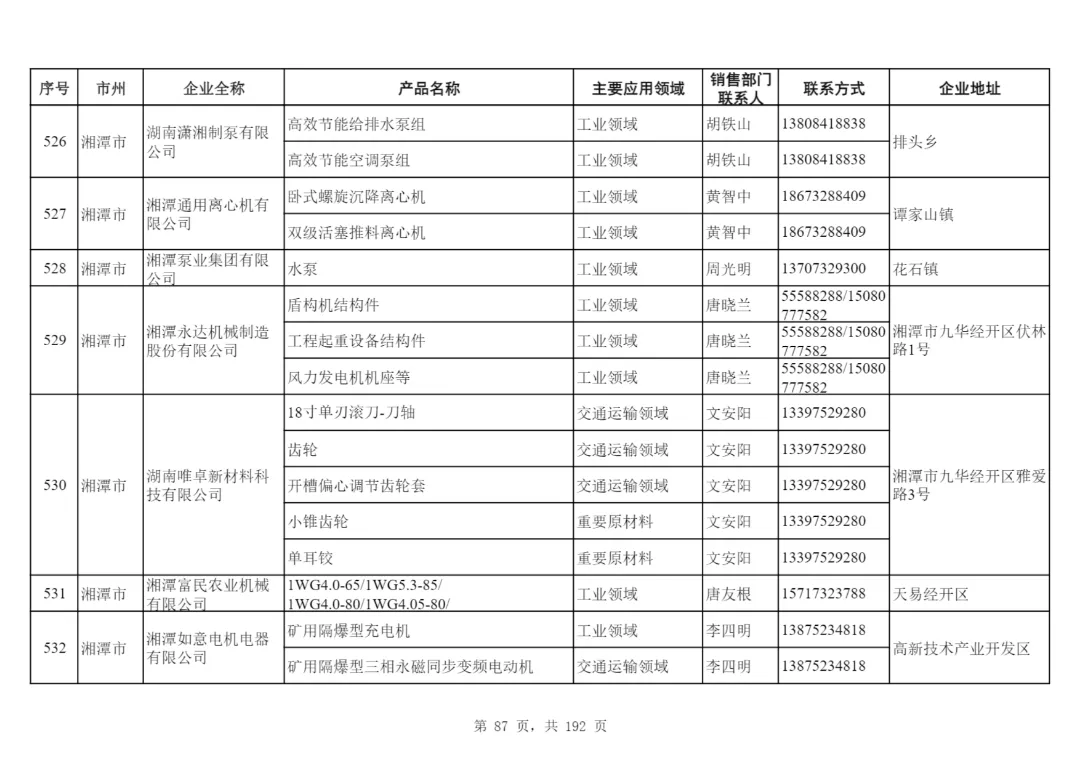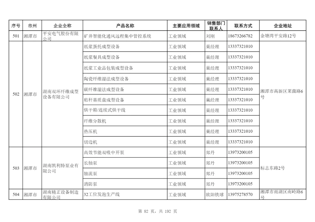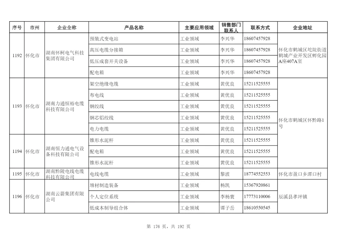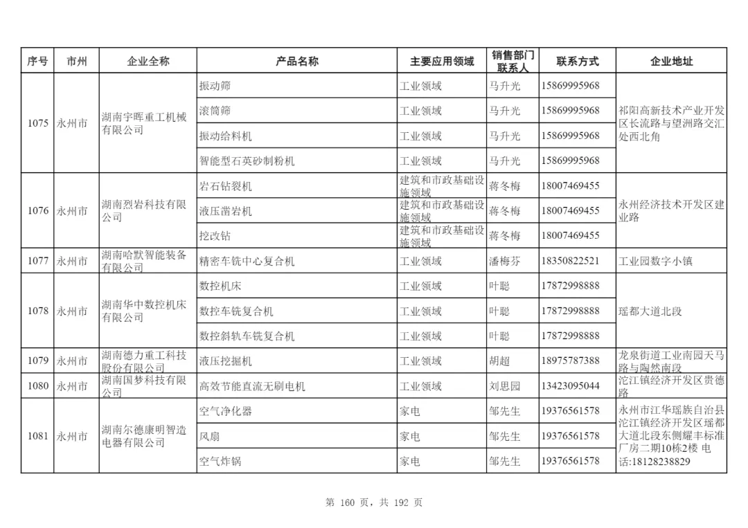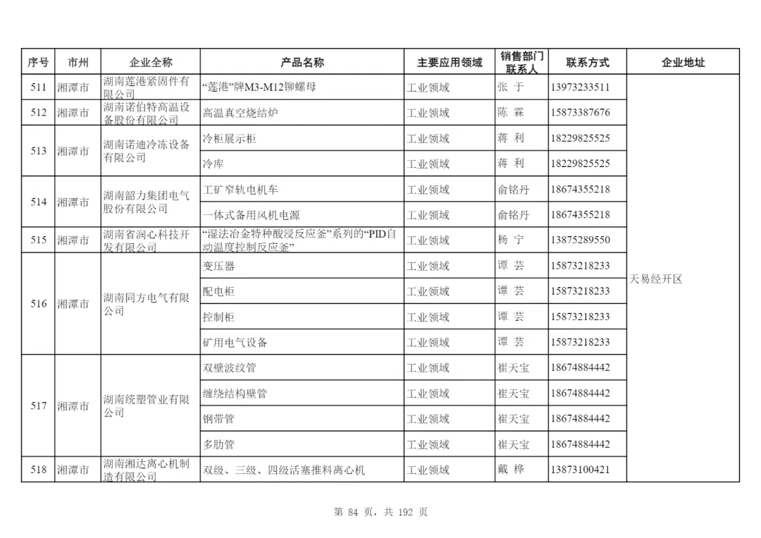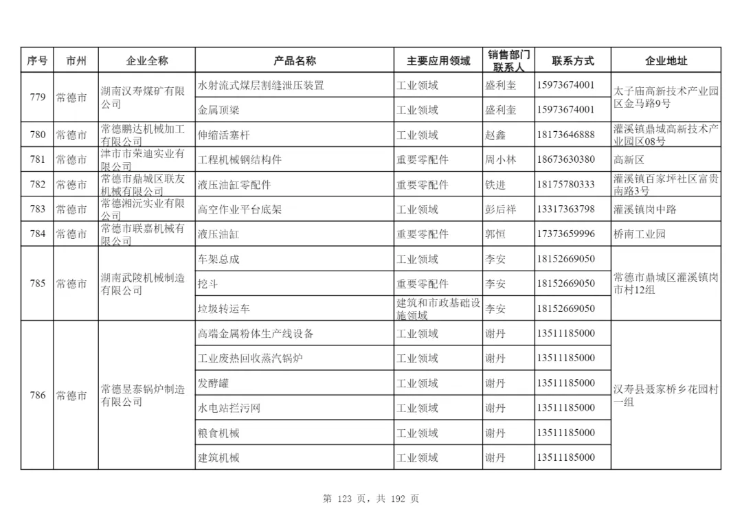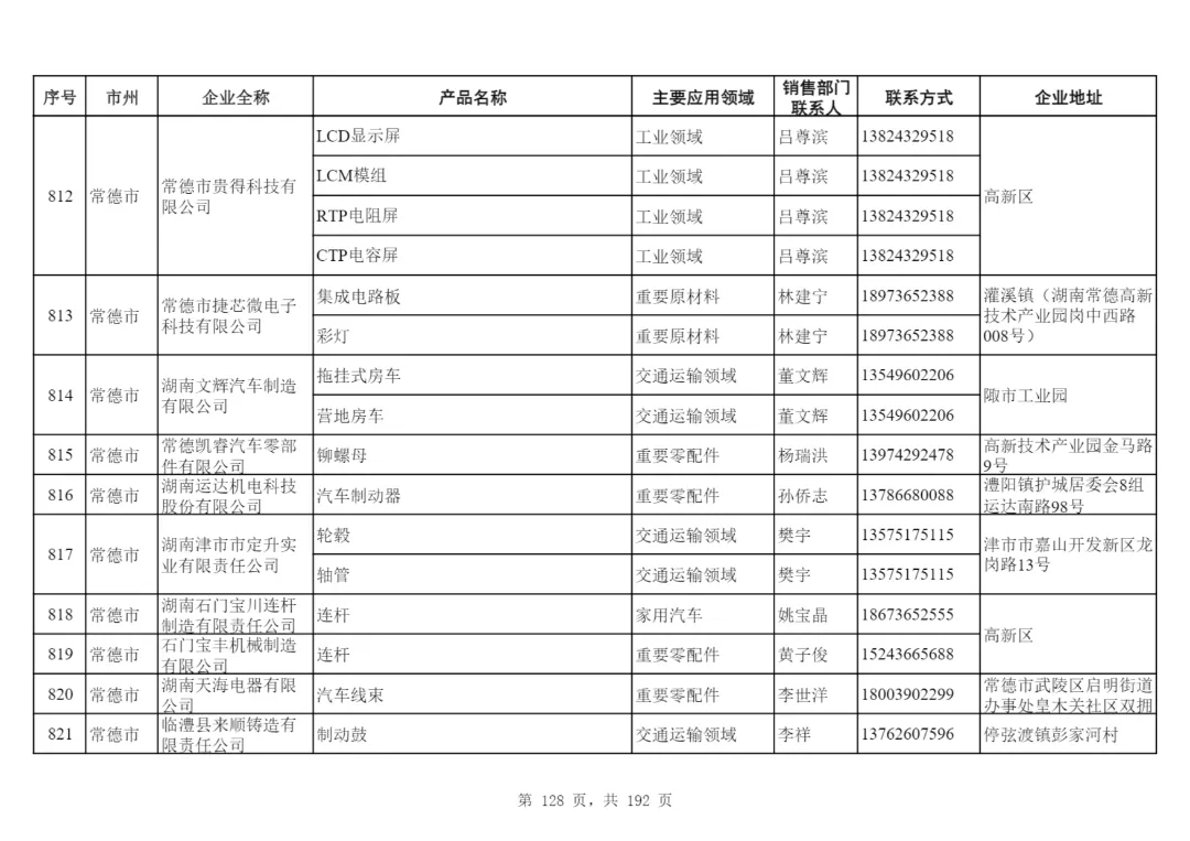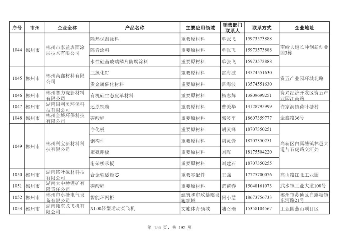 序号 | 市州 | 企业全称 | 产品名称 | 主要应用领域 | 销售部门 | 联系方式 | 企业地址 |