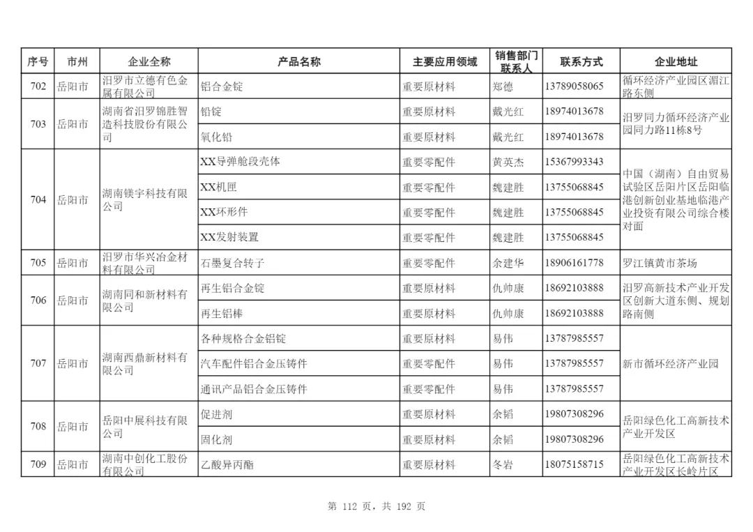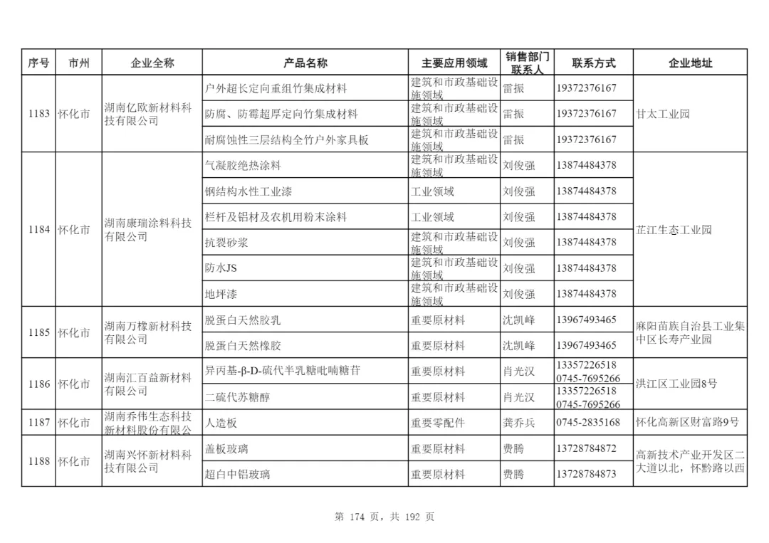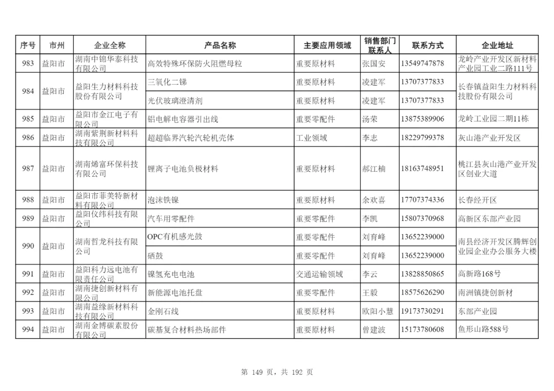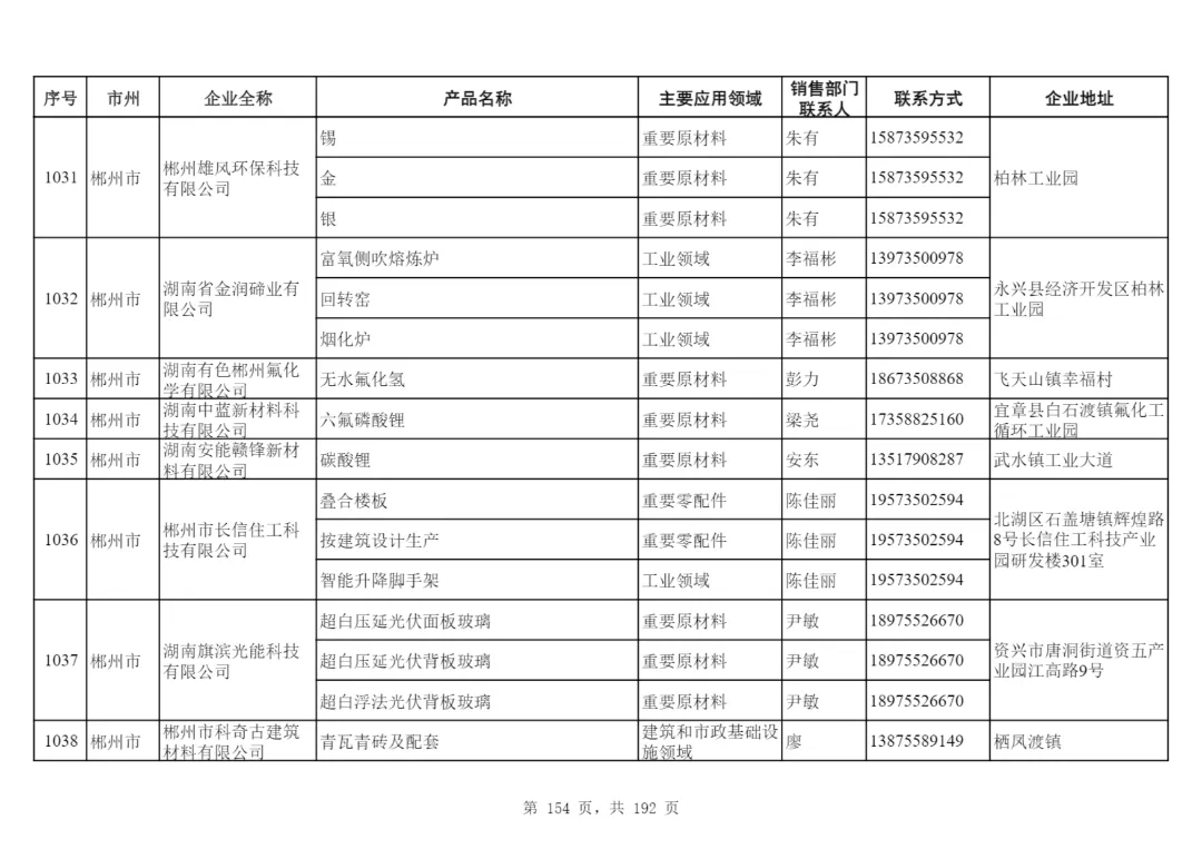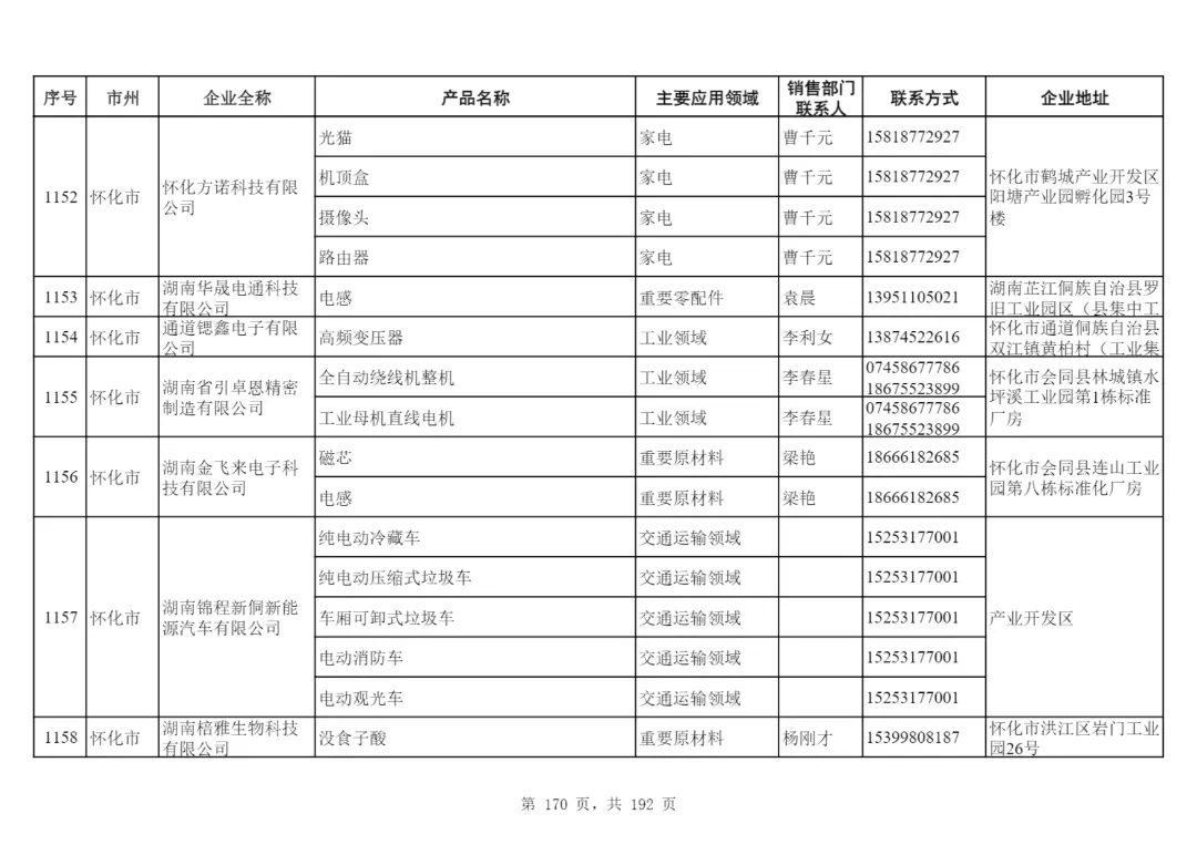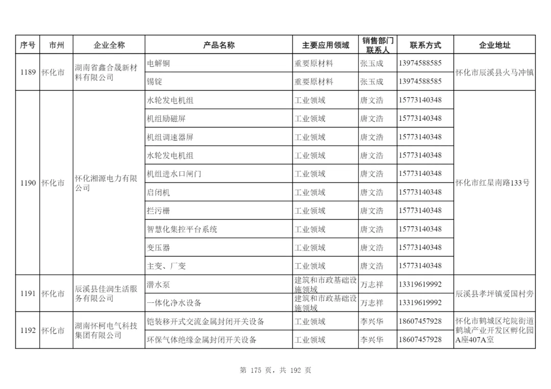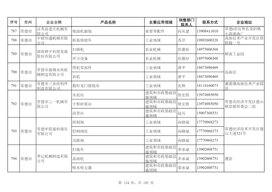 序号 | 市州 | 企业全称 | 产品名称 | 主要应用领域 | 销售部门 | 联系方式 | 企业地址 |