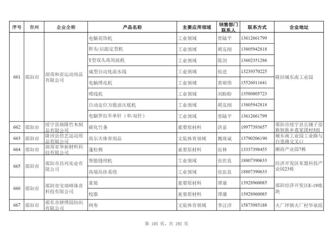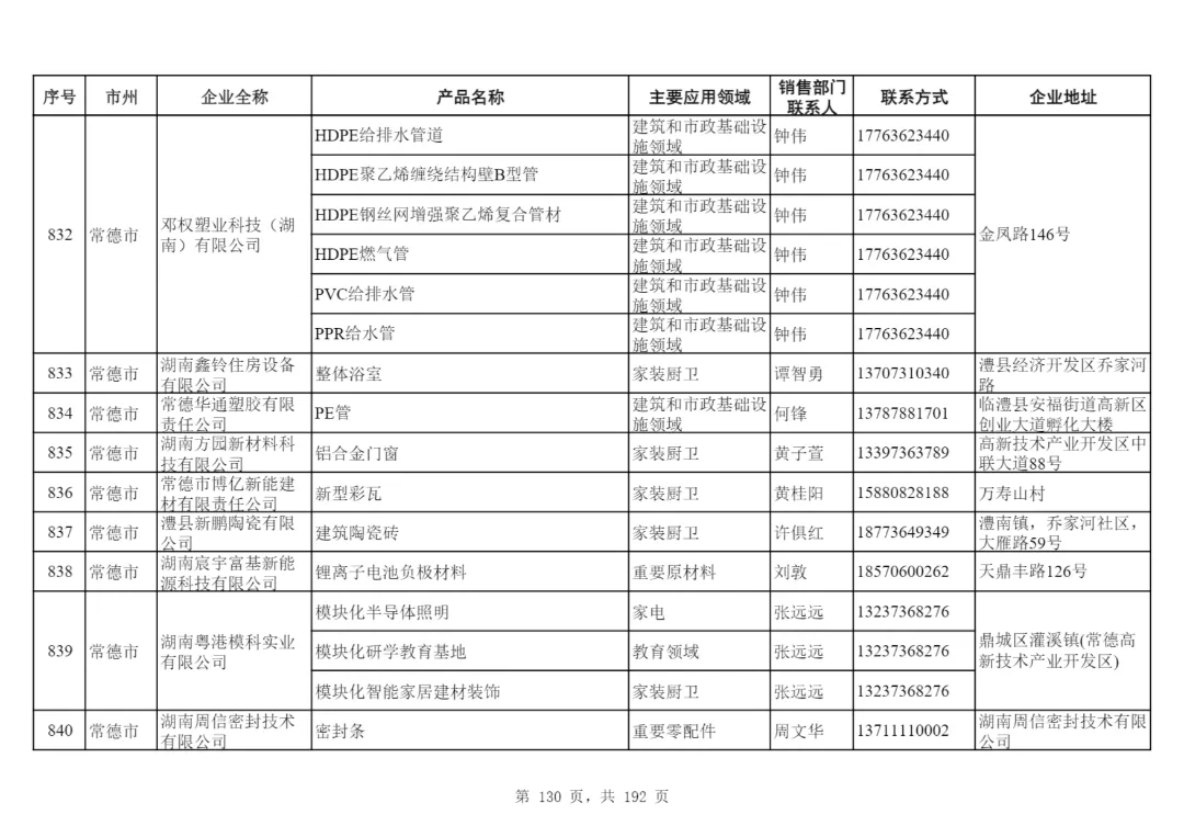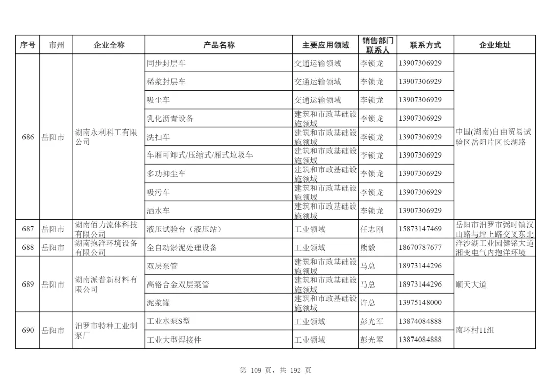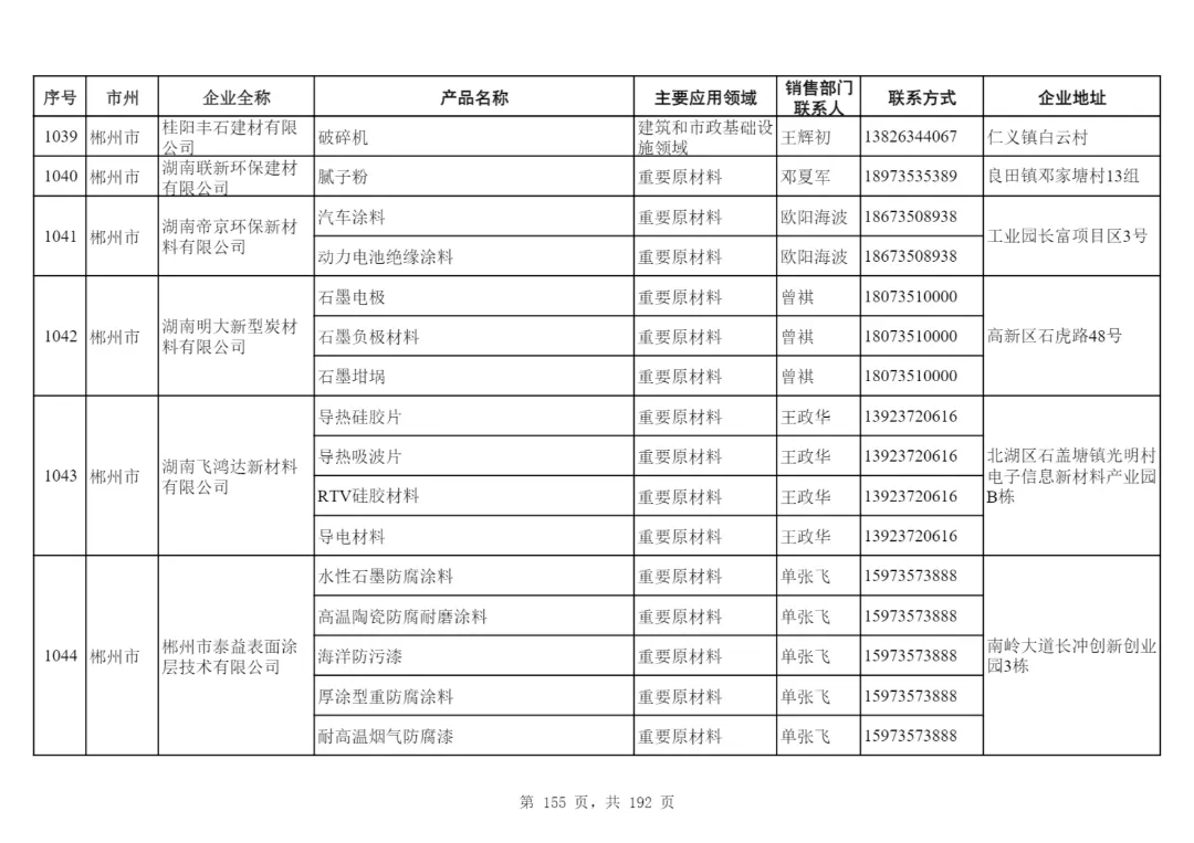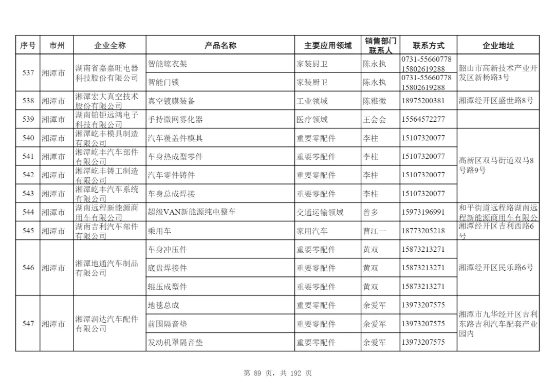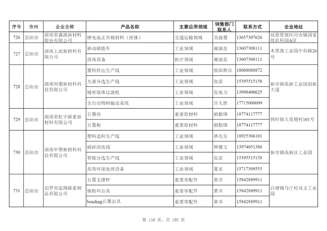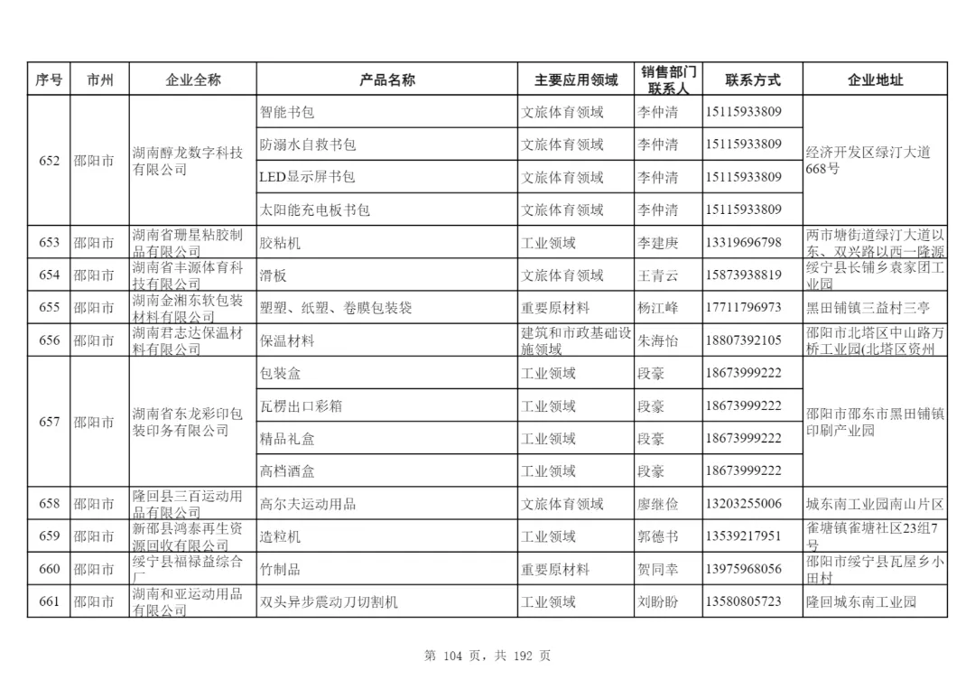 序号 | 市州 | 企业全称 | 产品名称 | 主要应用领域 | 销售部门 | 联系方式 | 企业地址 |