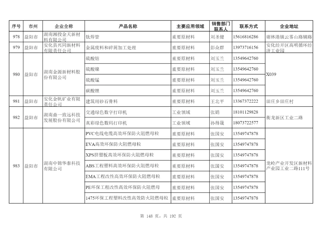 461 | 株洲市 | 株洲时代工程塑料科技有限责任公司 | 改性PA、改性PP、PC/ABS等 | 重要原材料 | 甘典松 | 18188938288 | 湘渌大道636号 |