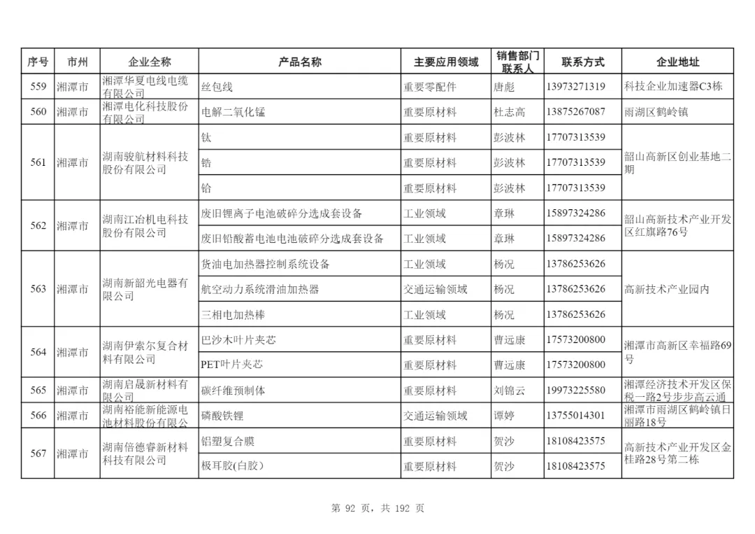 465 | 株洲市 | 株洲春华新材料科技有限责任公司 | 电池级碳酸锂 | 交通运输领域 | 旷建军 | 13544159985 | 九龙工业园 |