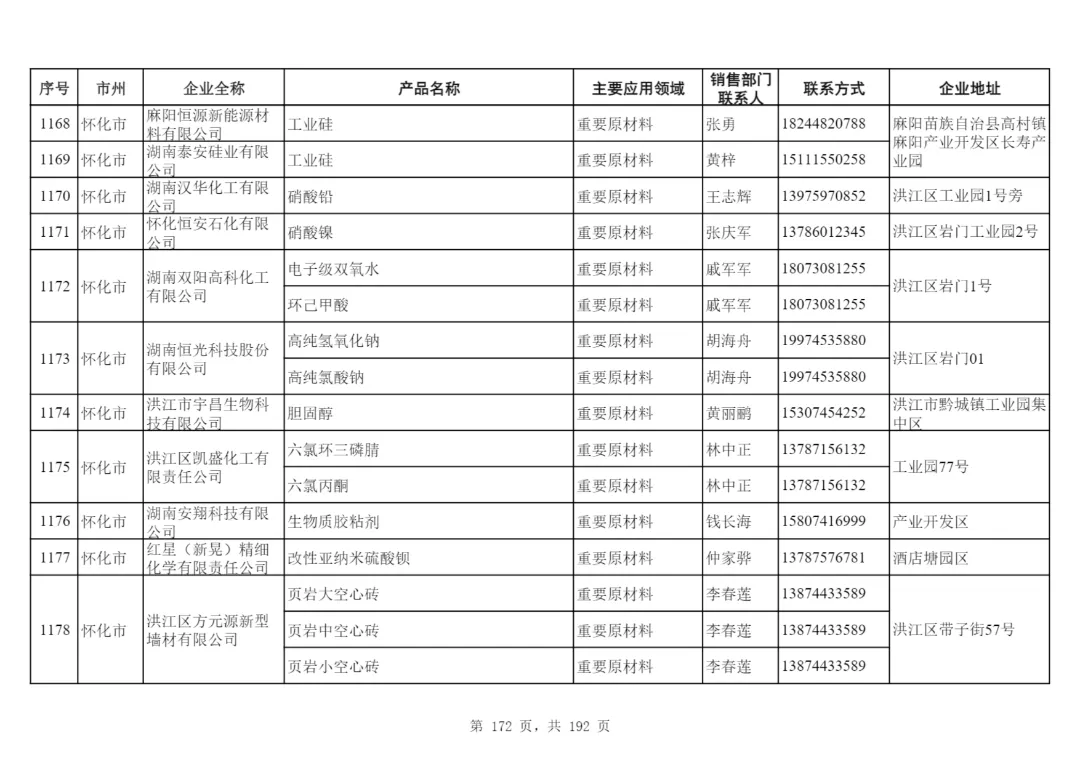 456 | 株洲市 | 株洲兴隆新材料股份有限公司 | 白炭黑(水合二氧化硅) | 重要原材料 | 言刚 | 13873300208 | 龙头铺街道 |