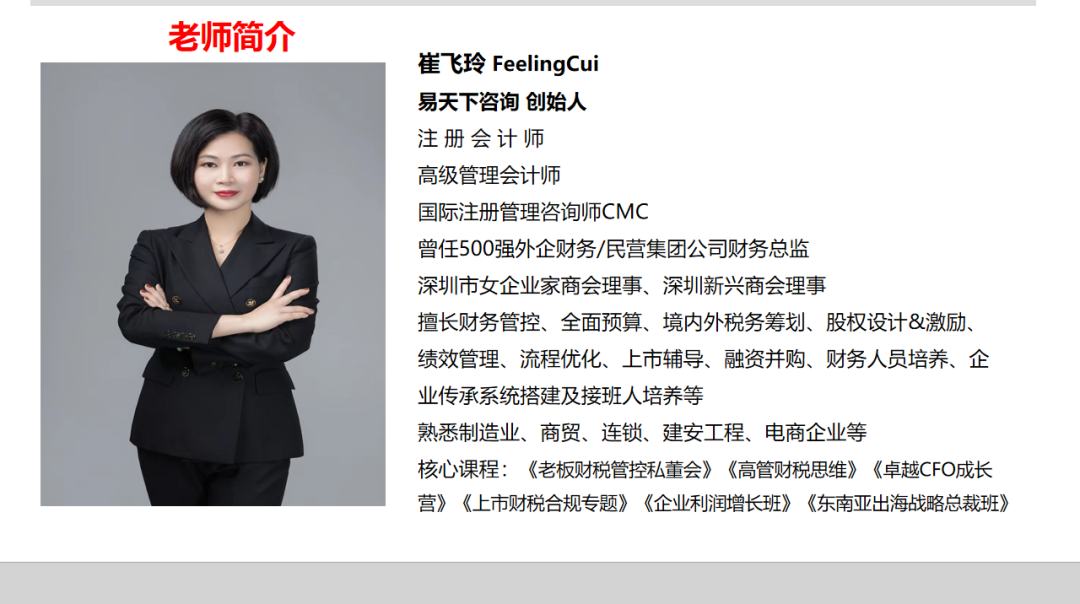 崔飞玲(深圳市新兴商会理事,深圳市易天下管理咨询有限公司创始人)介绍:我是新兴人,在我读中学的时候,新兴属于肇庆市的,今天也算是回家了。我的专业是一名财税咨询师,创办易天下咨询平台。我们都知道,“企业做大靠业务,企业做强靠财务”,我们易天下咨询就是帮助各位乡贤企业,做大做强做上市的。“