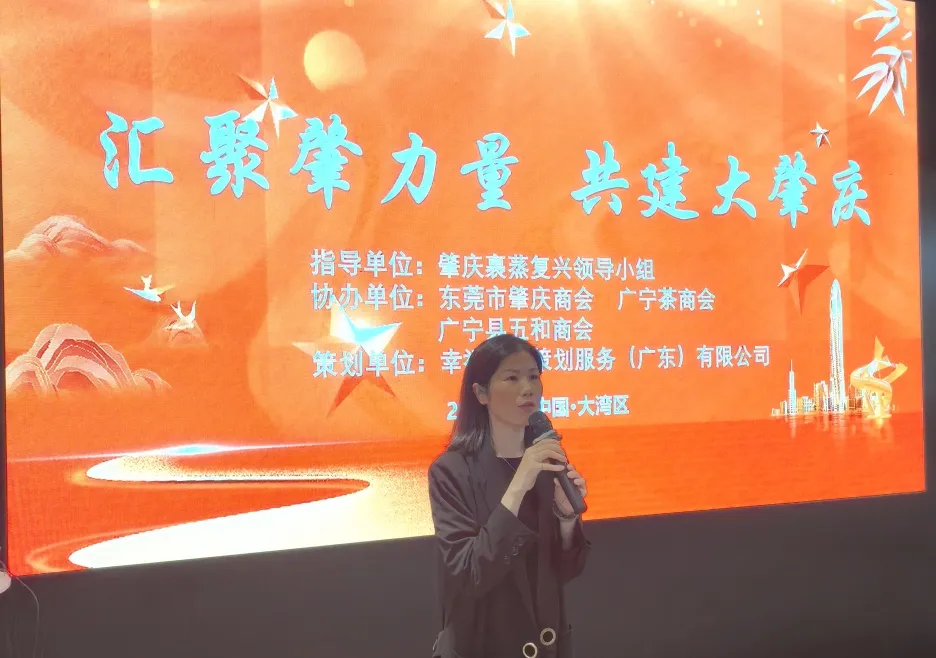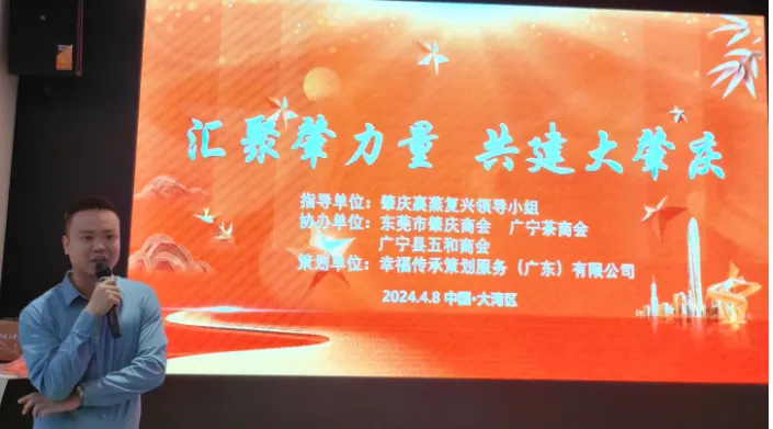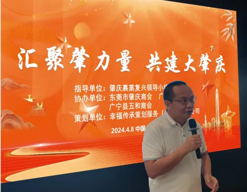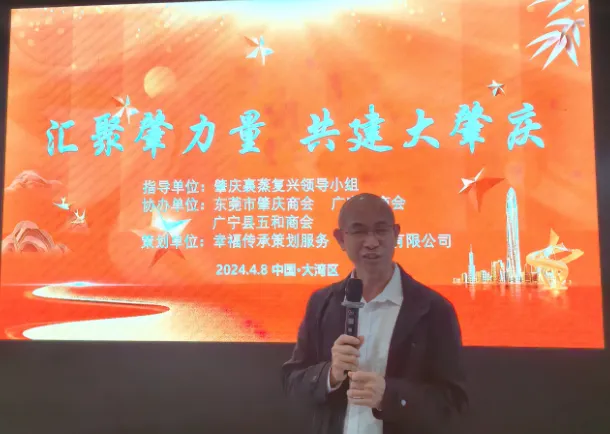高荣华(东莞肇庆商会秘书长,幸福传承创始人,广宁五和商会监事长)感谢每一位百忙中抽时间出席本次活动的商会朋友。东莞市肇庆商会2024年主题是”看见东莞肇商力量“,希望用“走出去,请进来”的方式,与大湾区更多的肇庆籍商会组织、单位相互认识,让大家看见东莞市肇庆商会的力量,也让我们商会看见更多肇庆力量,汇聚在一起,共建更好的大肇庆。