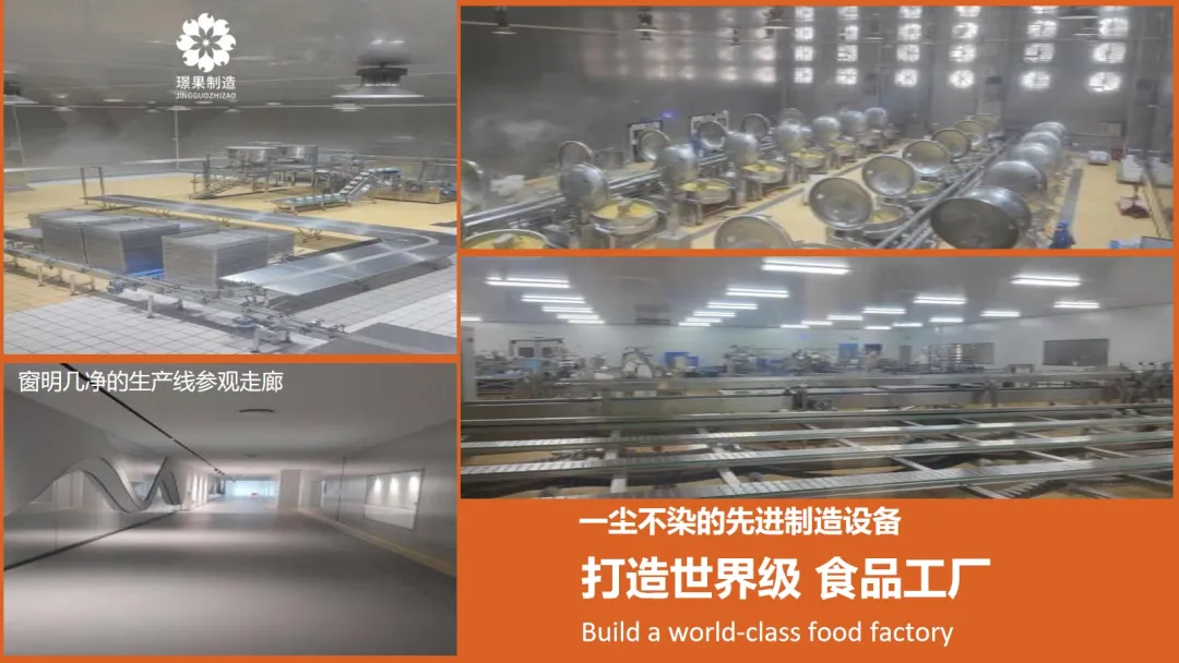 首站,来到生产工场让我们眼前一亮:大型设备,全自动化的生产模式,精湛工艺与高效率的机器,简直让人叹为观止。璟果立志要打造的不仅仅是一个工厂,更是世界级食品制造的标杆!