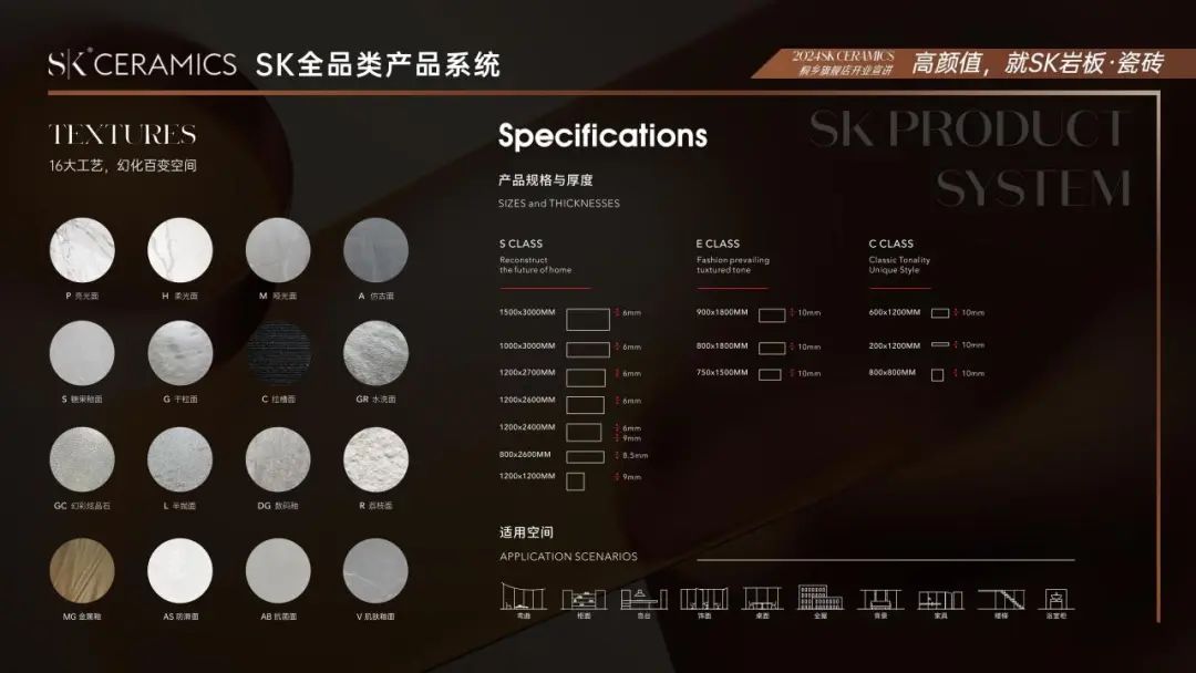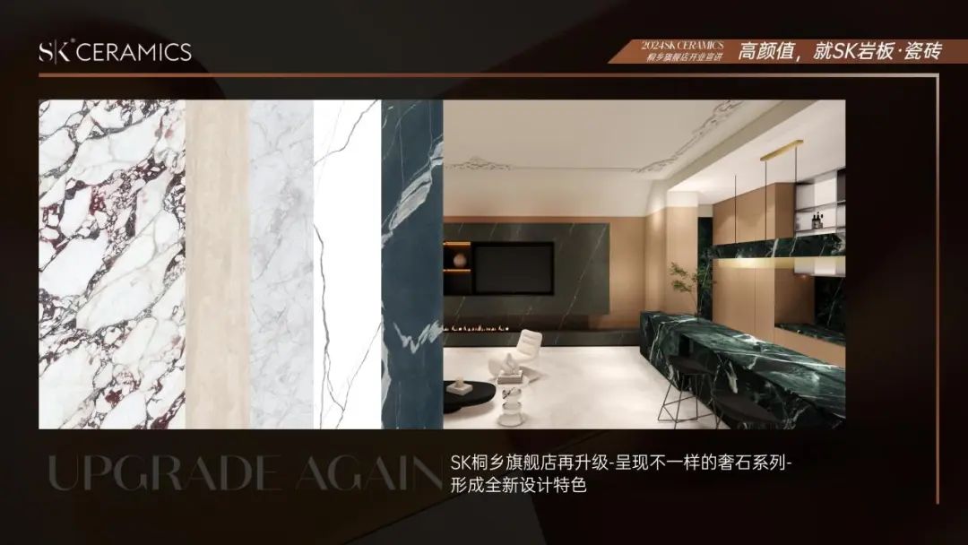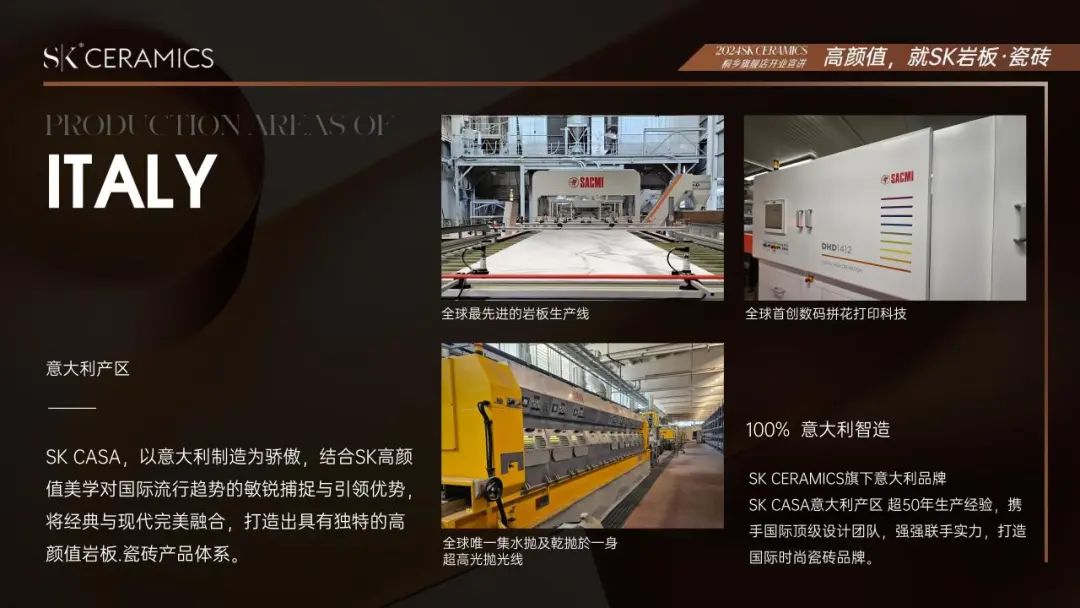 2024,SK CERAMICS正式成立SK CASA意大利本土品牌,以意大利制造为骄傲,结合SK高颜值美学对国际流行趋势的敏锐捕捉与引领优势,将经典与现代完美融合,构筑更全面的高颜值、高品质、高附加值的岩板.瓷砖产品体系,真正赋能设计师,打造高端设计师选材库,引领时尚潮流!