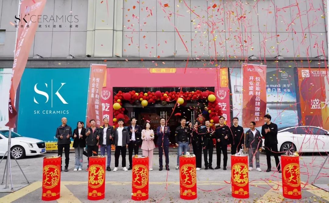 昂扬向上的舞狮跳跃起舞,精彩的剪彩仪式为桐乡开业盛典推向新高潮!桐乡广电家博会会长 蒋志杰先生,广弘美家总经理 黄育群女士,SK CERAMICS 创始人 何翠刚先生、悦正建材创始人 朱瞿良先生,王庭装饰.璀璨设计空间设计总经理 王文学先生,嘉兴CAOZHAI家具集合店创始人 孙双雷先生,上海沃森迪光电科技有限公司总经理 王文竹女士,等一众领导以及来自不同领域的合作伙伴、广大业主和媒体朋友们等众多嘉宾齐聚一堂,共同见证SK重要时刻,祝愿SK CERAMICS桐乡超级终端3.0焕新升级,高颜起航,生意兴隆!