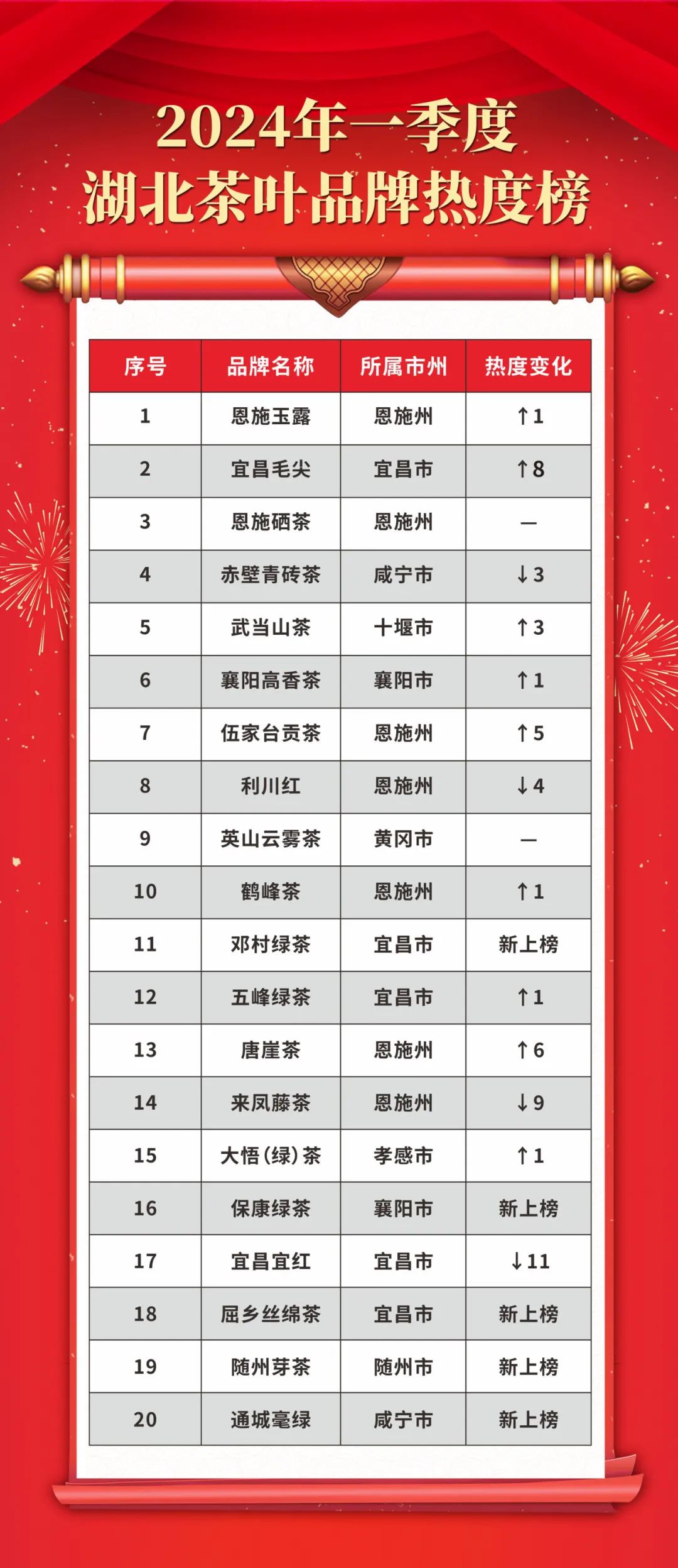 湖北茶叶品牌热度榜TOP20出炉
