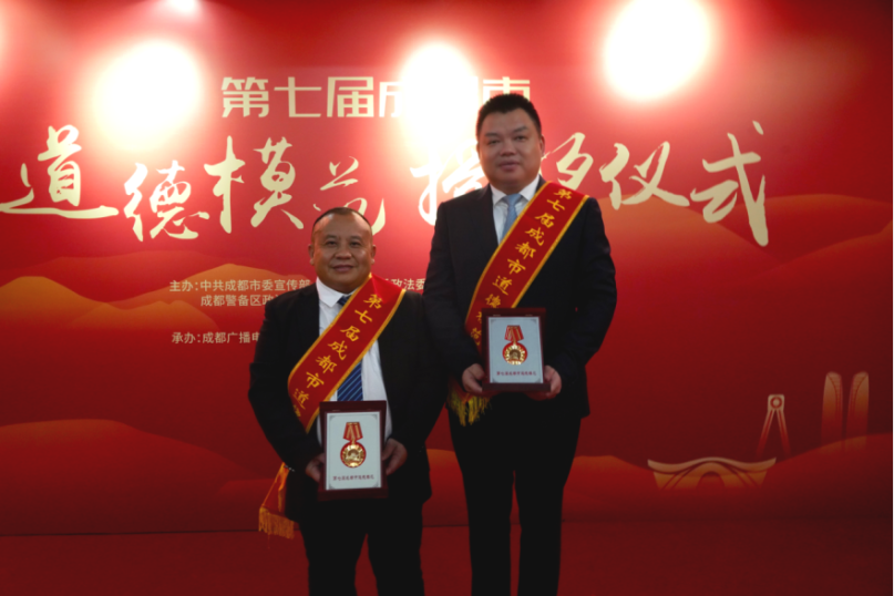 近日,第七届成都市道德模范授奖仪式顺利举行。新津区新生代企业家商会副会长单位——成都彩虹电器(集团)股份有限公司总经理刘斌,新津区新生代企业家商会秘书长、四川矮哥园林绿化工程有限公司总经理叶玉明通过基层推荐、群众推举、专家评审、媒体公示,获得“第七届成都市道德模范”荣誉称号。