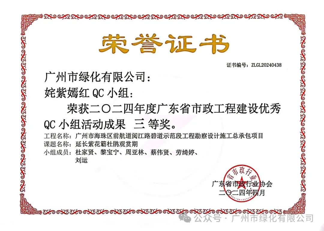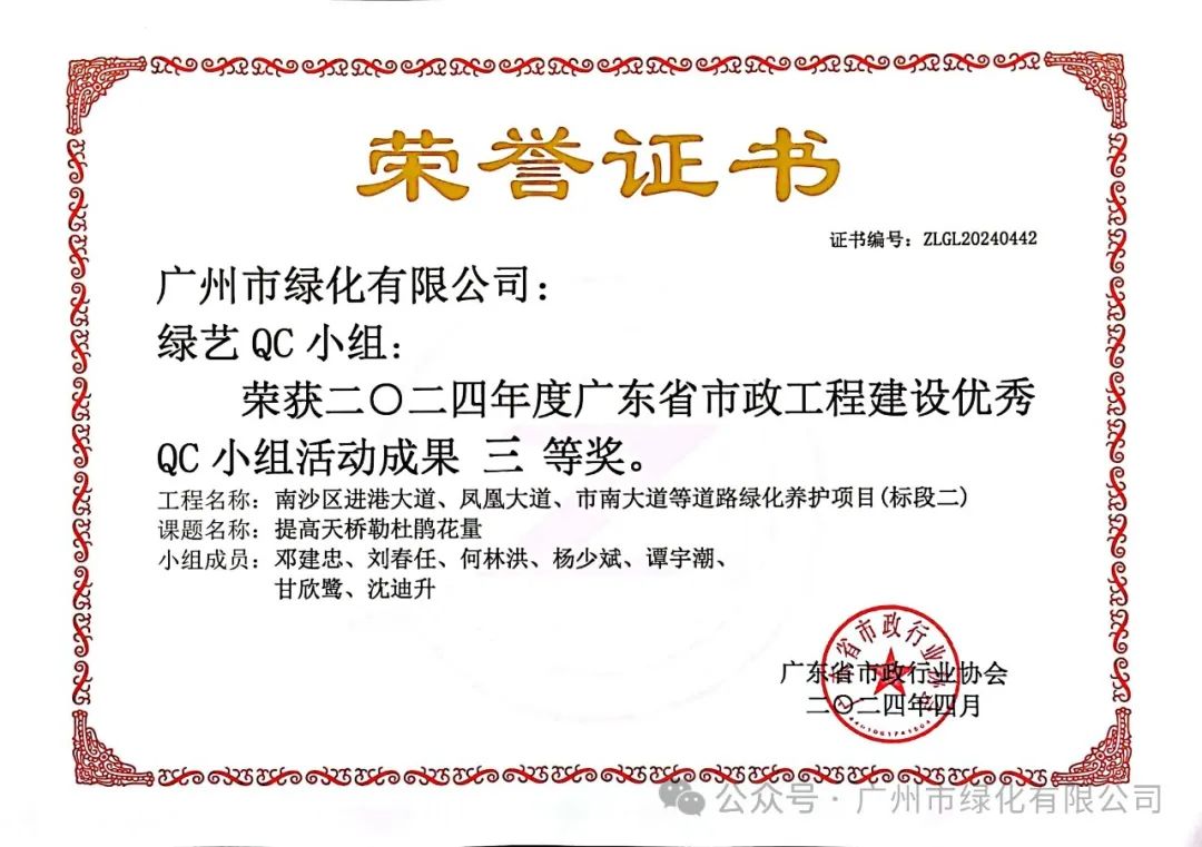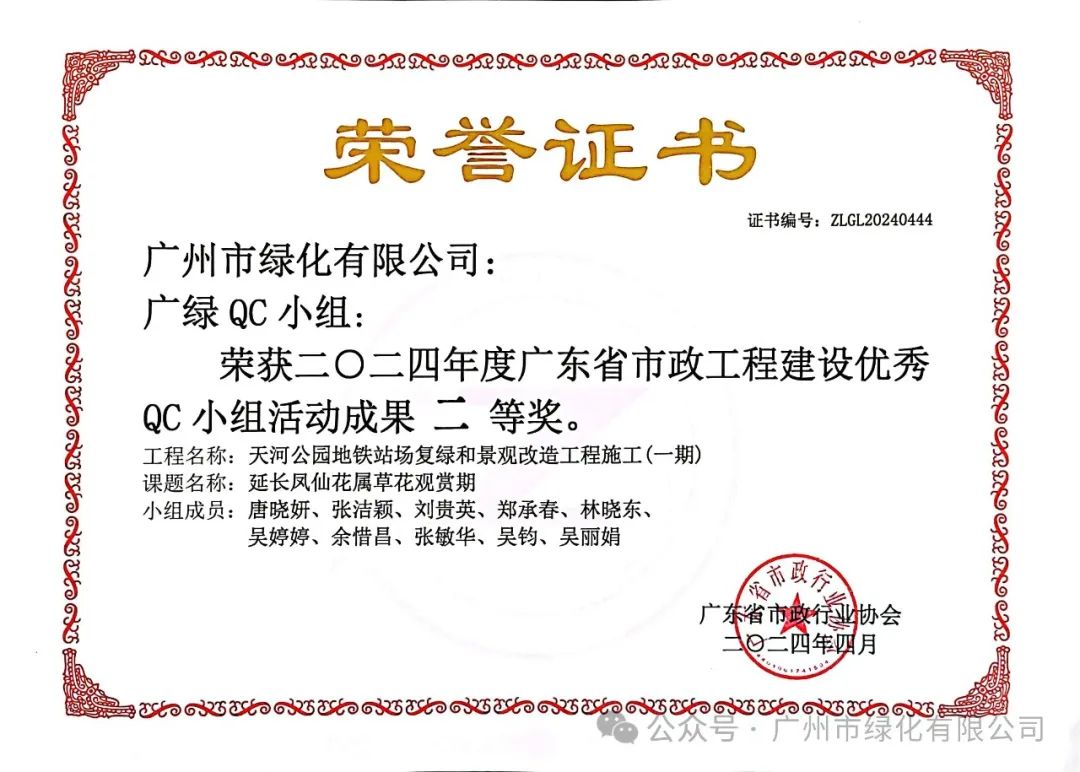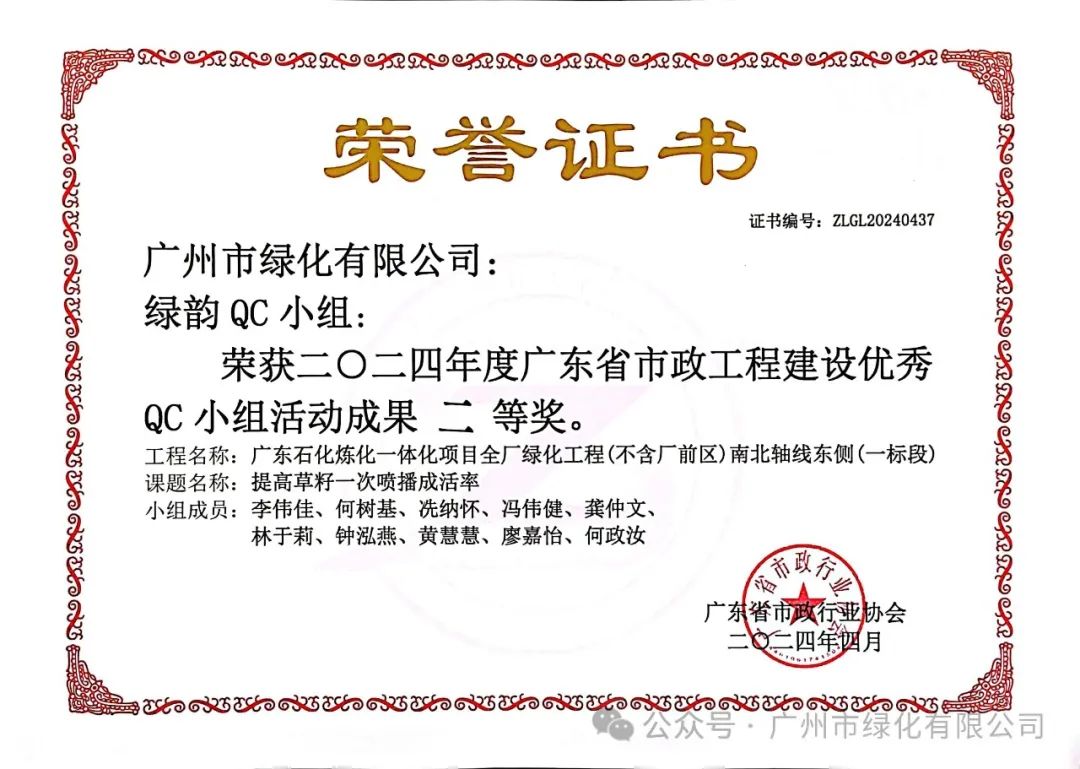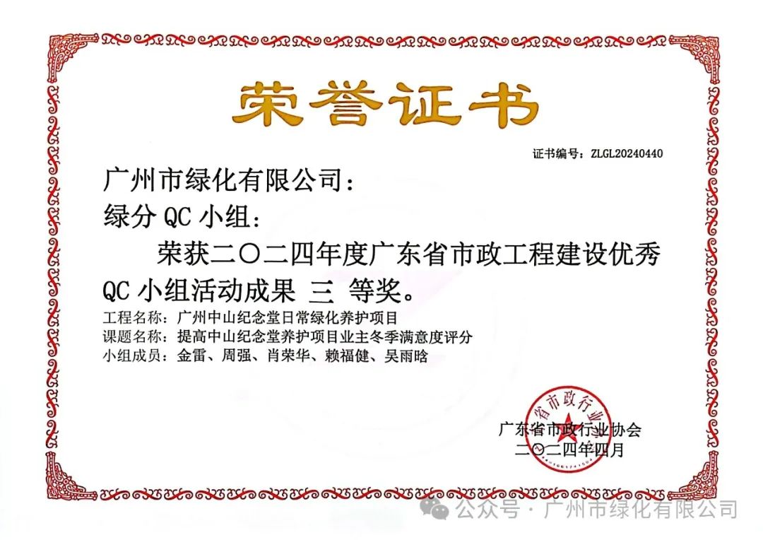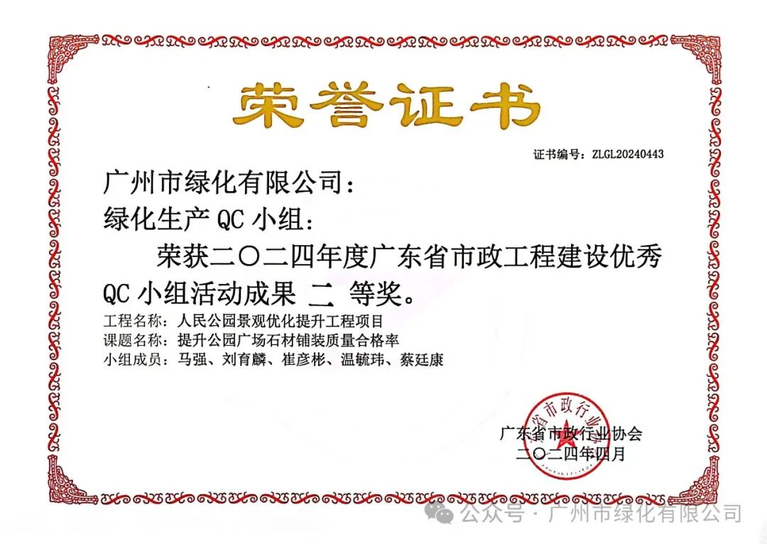 绿化公司历来重视人才的培育与团队的构建。借助QC小组活动这一平台,公司成功提升了员工的质量观念和创新能力,从而塑造了一支具备高素质和专业能力的质量管理团队。此次荣获的质量信得过班组荣誉,正是公司在团队建设领域取得的显著成果之一,充分展现了公司在质量管理方面的卓越实力。