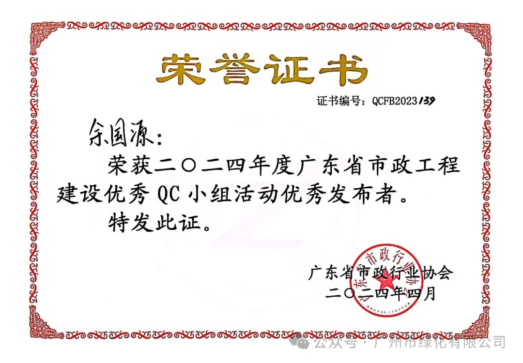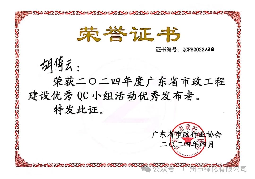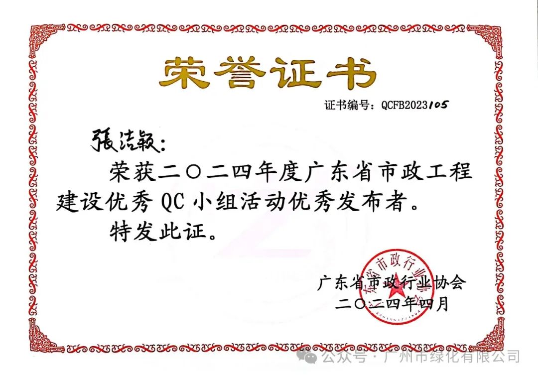 经过严格筛选,本届共有819个QC成果、33个质量信得过班组成果进入决赛环节。绿化公司的9项成果全部顺利进入决赛。经过激烈角逐,最终QC小组活动成果荣获1个一等奖、4个二等奖和3个三等奖;质量信得过班组成果荣获1个一等奖。此外,还有3名员工荣获优秀发布者称号,充分展现了公司在QC小组活动中的卓越实力。这些荣誉的获得不仅为公司增光添彩,也树立了公司良好的企业形象。