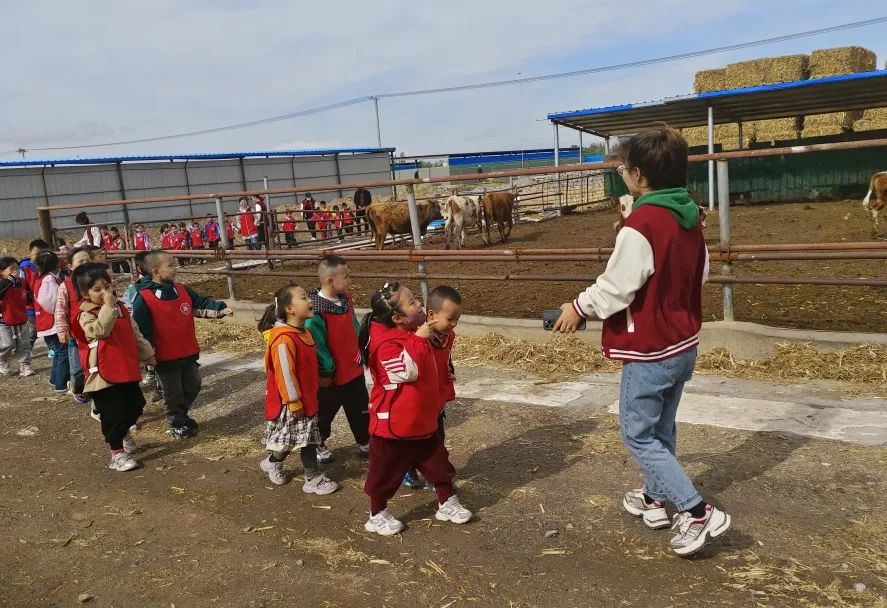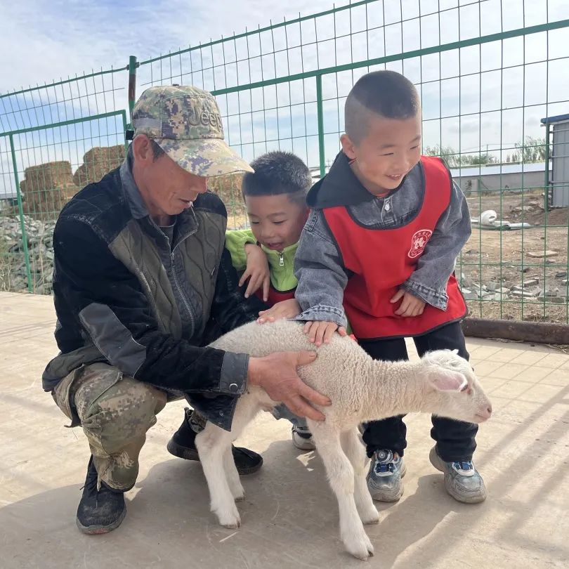 走进养殖区域,志愿者一边生动地为孩子们介绍羊只的品种、习性以及饲料制作的过程,一边邀请小朋友们和小羊来个亲密接触。孩子们纷纷伸手上前抚摸小羊柔软的身躯,感受小羊带来的温柔。同时,志愿者们将提前准备好的干草让孩子们一起喂牛、喂羊,深刻体验与动物亲密互动的乐趣。孩子们你一言我一语,不停地表达着内心的好奇,纯真的笑声充盈着整个园区,好不热闹!