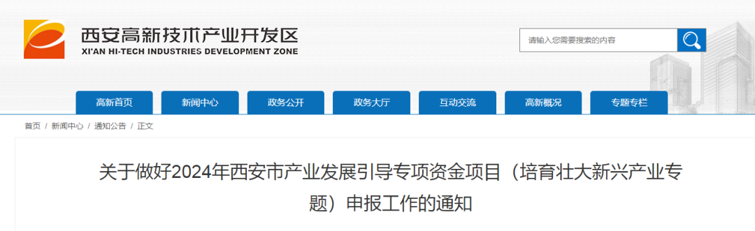 关于做好2024年西安市产业发展引导专项资金项目(培育壮大新兴产业专题)申报工作的通知