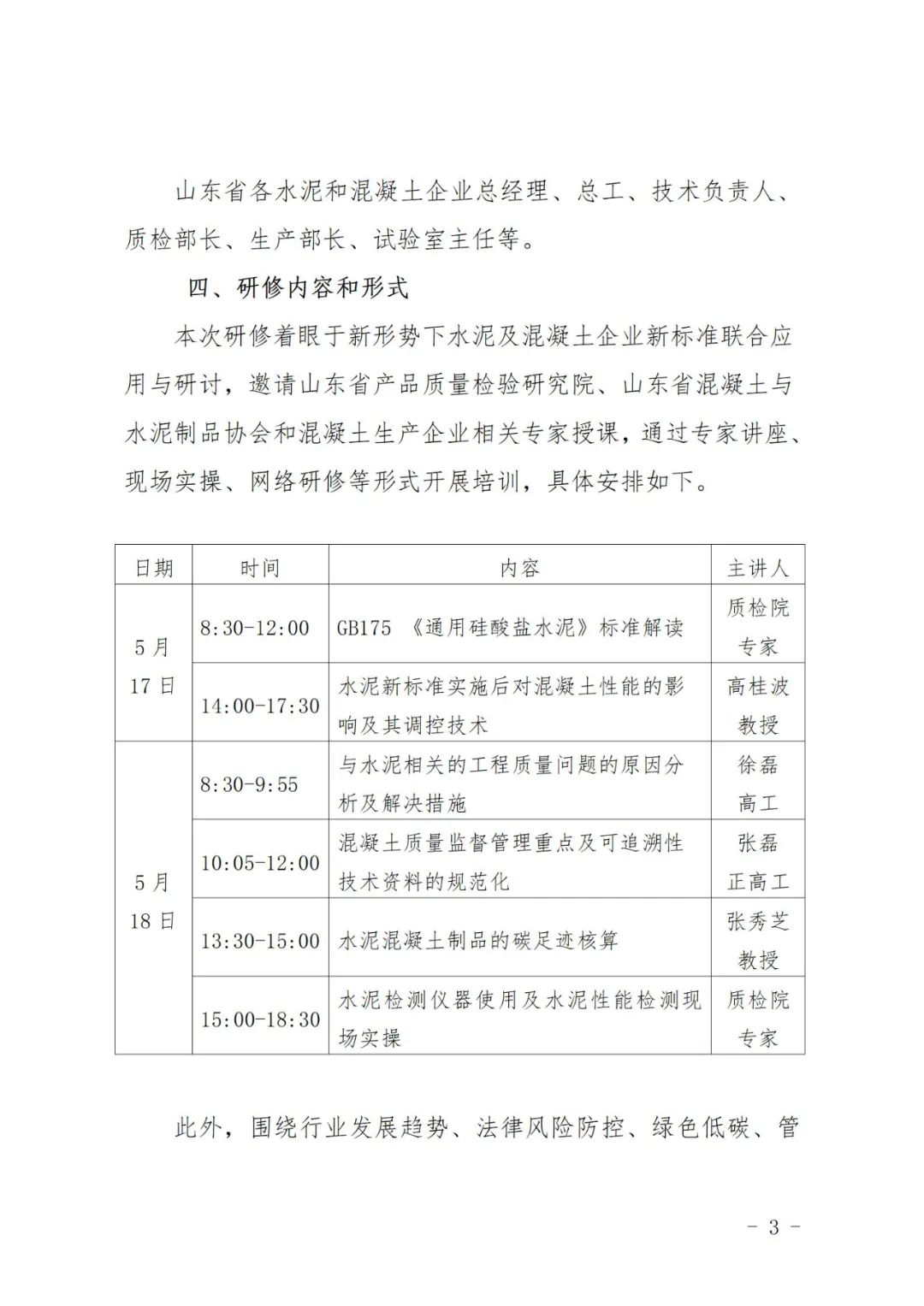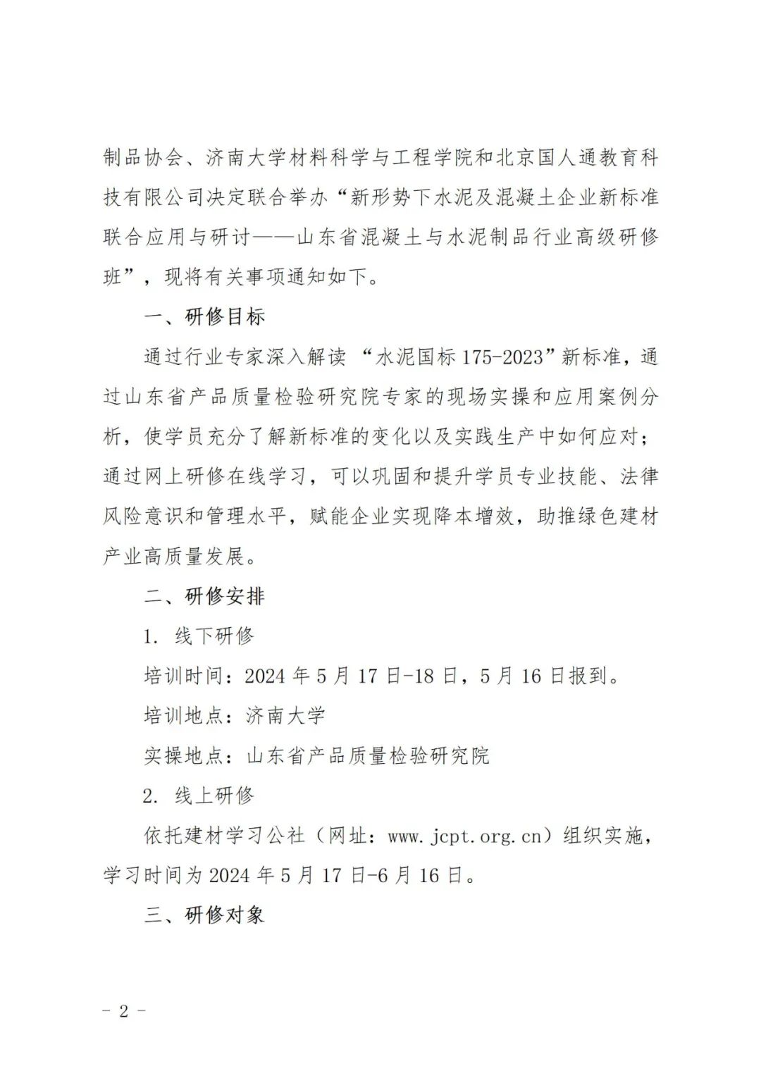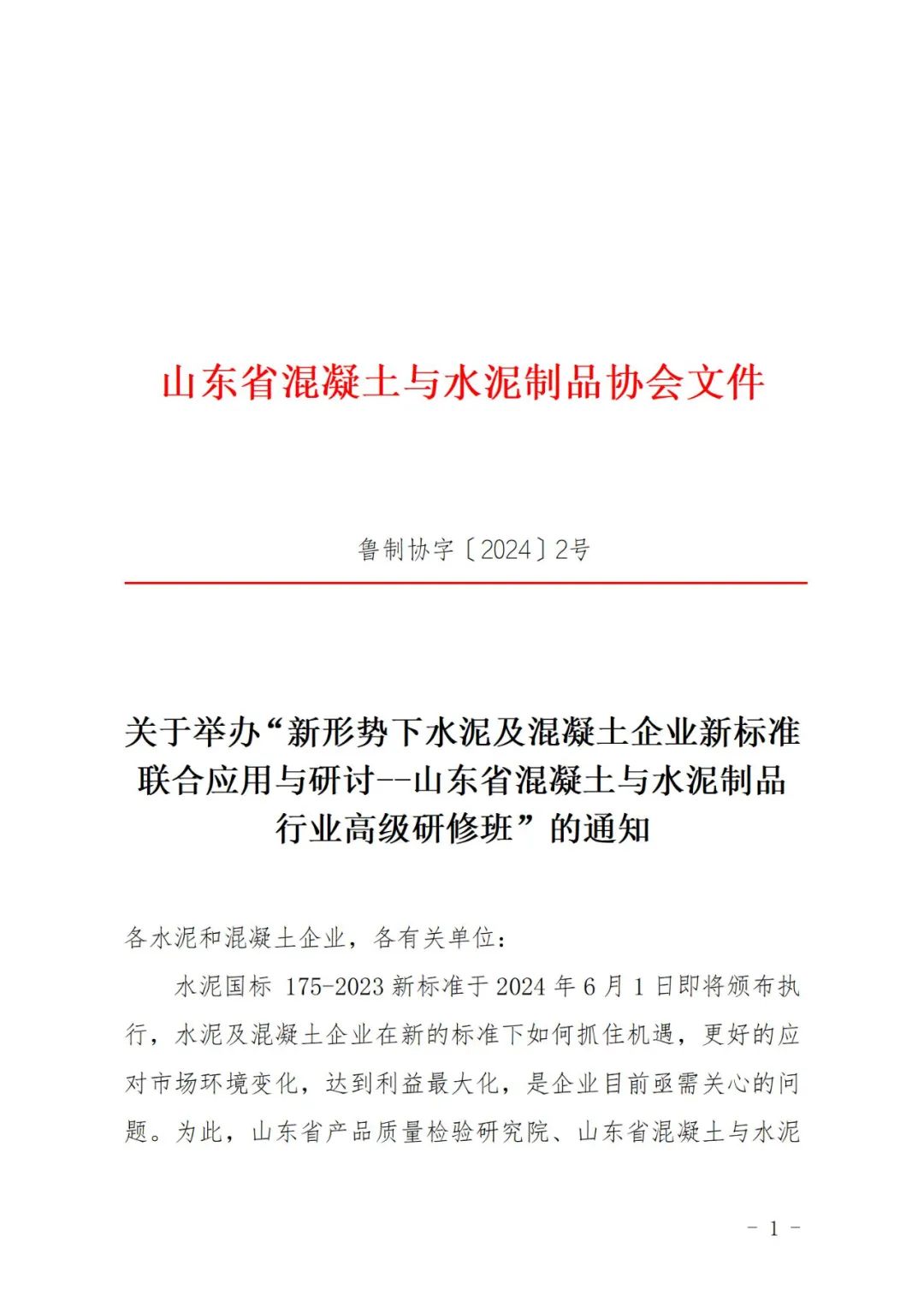 关于举办“新形势下水泥及混凝土企业新标准联合应用与研讨--山东省混凝土与水泥制品行业高级研修班”的通知