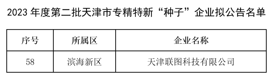 孵化企业天津联图科技有限公司入库天津市专精特新“种子”企业