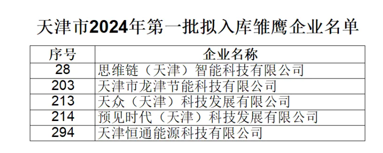 孵化企业思维链入库天津市2024年第一批拟入库雏鹰企业