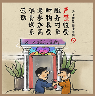 严禁收受与行使职权有关系单位、个人的款物、高消费娱乐等活动。