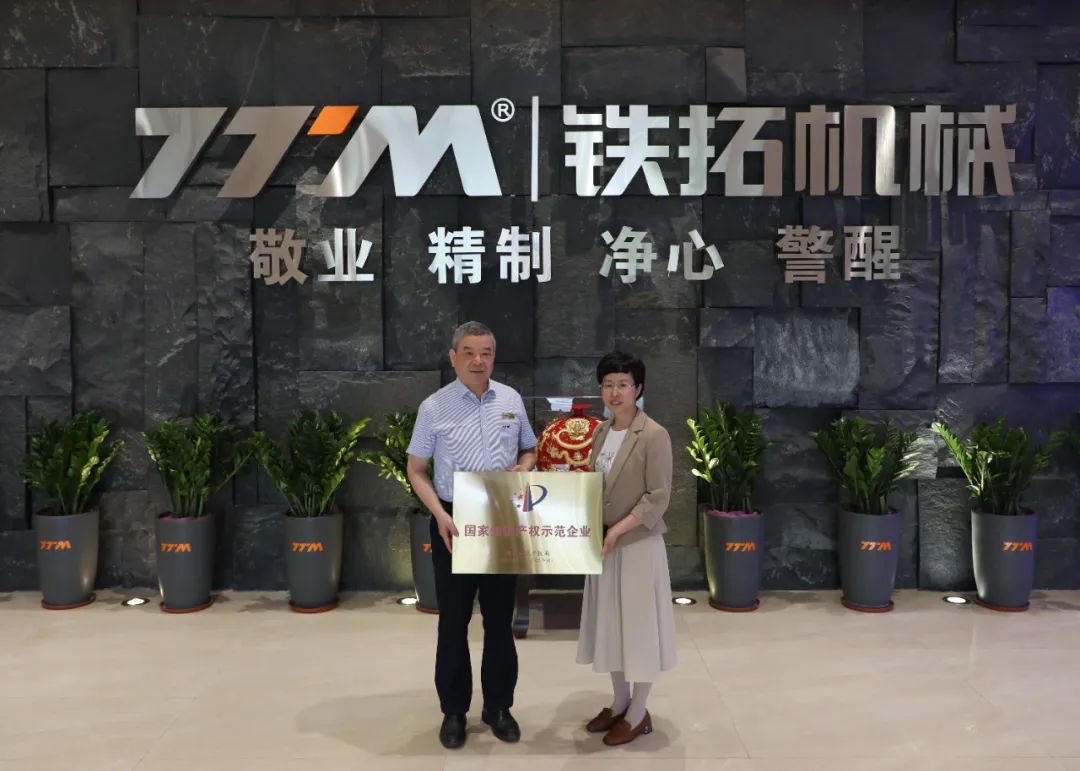 4月24日,洛江区市场监督管理局代表国家知识产权局授予铁拓机械“国家知识产权示范企业”奖牌,以此表彰铁拓机械在交通工程设备制造领域卓越的科技研发能力。