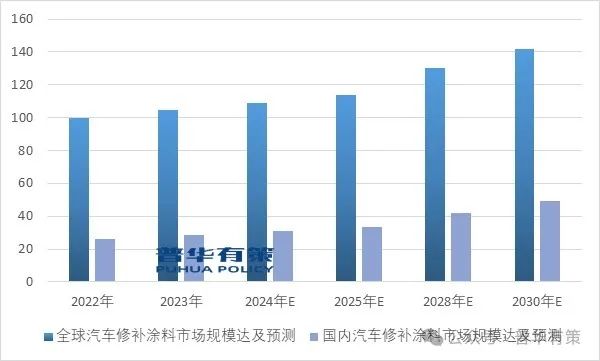 2022-2030年全球及国内汽车修补涂料市场规模达及预测(亿美元)