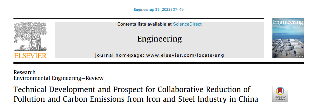 Zhu,T.,Liu,X.,Wang,X.,He,H.Technical Development and Prospect for Collaborative Reduction of Pollution and Carbon Emissions from Iron and Steel Industry in China[J]Engineering,2023,doi:org/10.1016/j.eng.2023.02.014