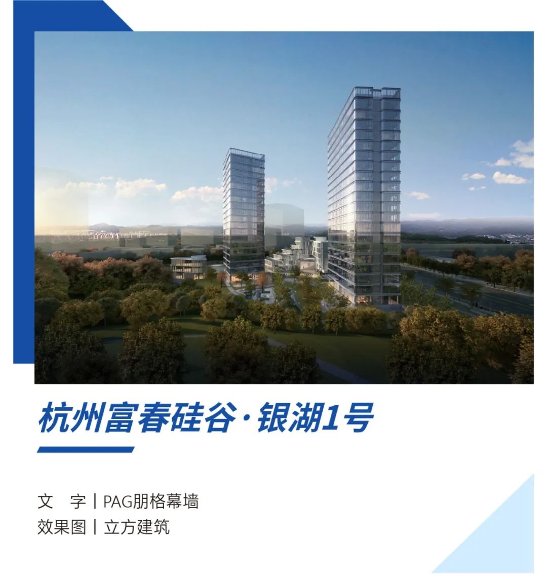 杭州富春硅谷·银湖1号项目由深圳市立方建筑设计顾问有限公司(建筑方案)、浙江省工业设计研究院( 建筑施工图)设计,PAG朋格幕墙担任幕墙设计咨询顾问,幕墙面积2.8万平方米。幕墙系统多样,有玻璃幕墙、门窗、铝装饰线条、雨棚等。