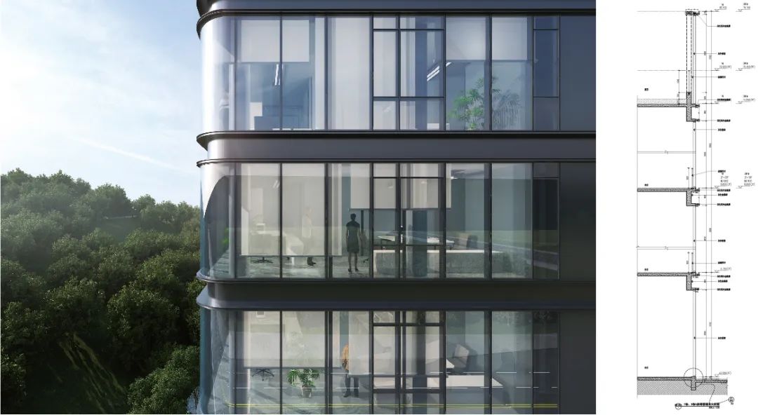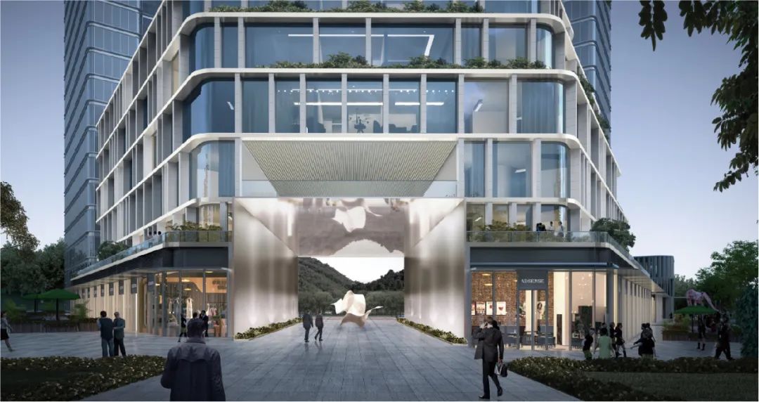 该项目整体建筑立面设计营造一种现代大气的氛围,以简洁、挺拔、有呼应的建筑风格展现现代化都市的建筑之美。建筑材料以玻璃为主,简约,现代却富有科技感。