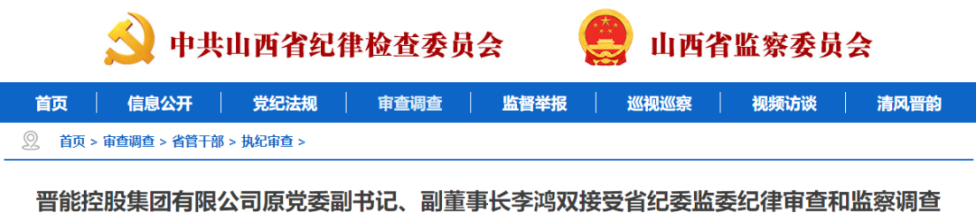晋能控股集团有限公司原党委副书记、副董事长李鸿双涉嫌严重违纪违法,目前正接受省纪委监委纪律审查和监察调查。