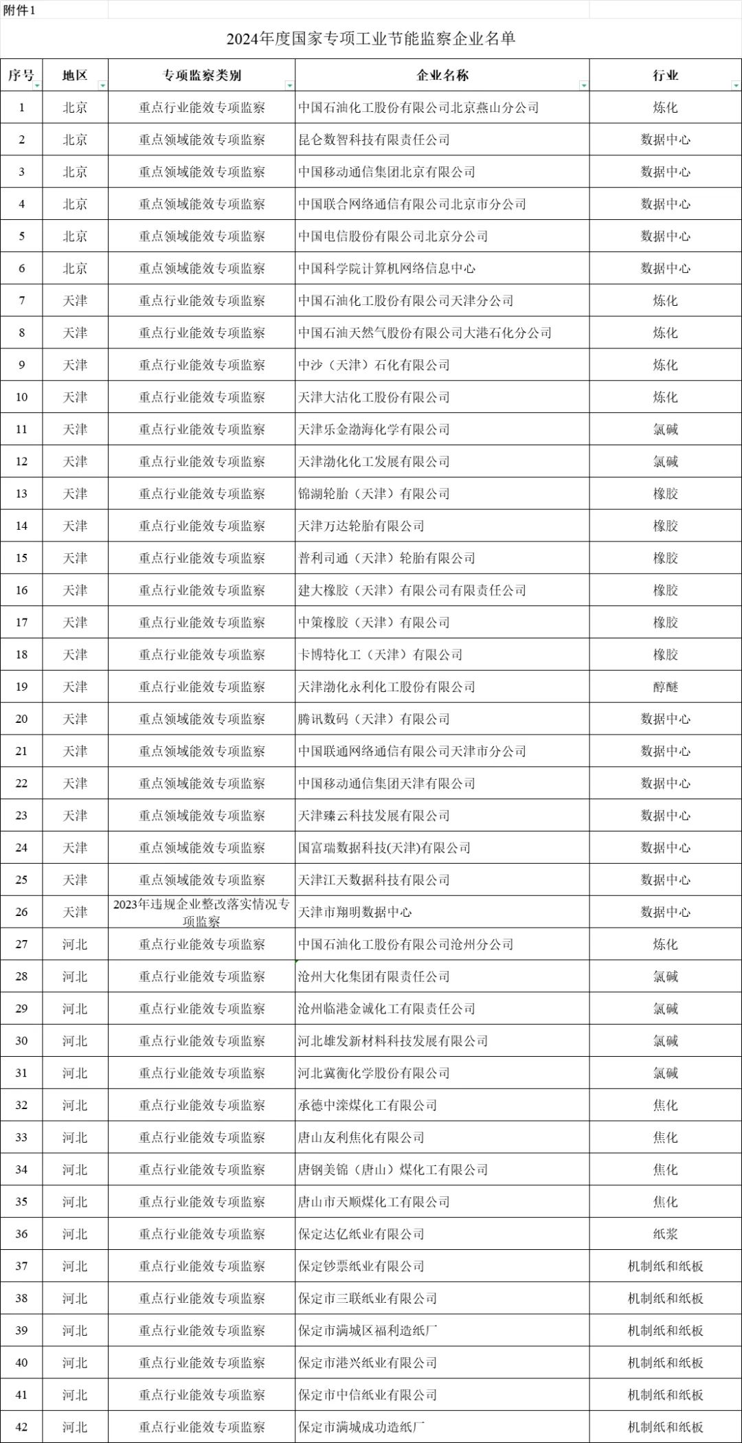 附件:2024年度国家专项工业节能监察企业名单(部分)