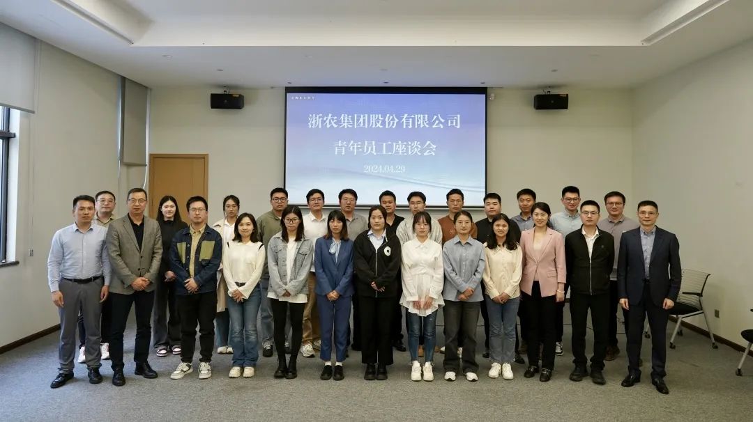 4月29日下午,在五四青年节即将来临之际,浙农股份组织召开青年员工座谈会。集团党委书记、董事长叶伟勇,党委副书记、总经理曾跃芳,人力资源部负责人及来自集团本级与各成员企业的22位青年员工代表参加会议。