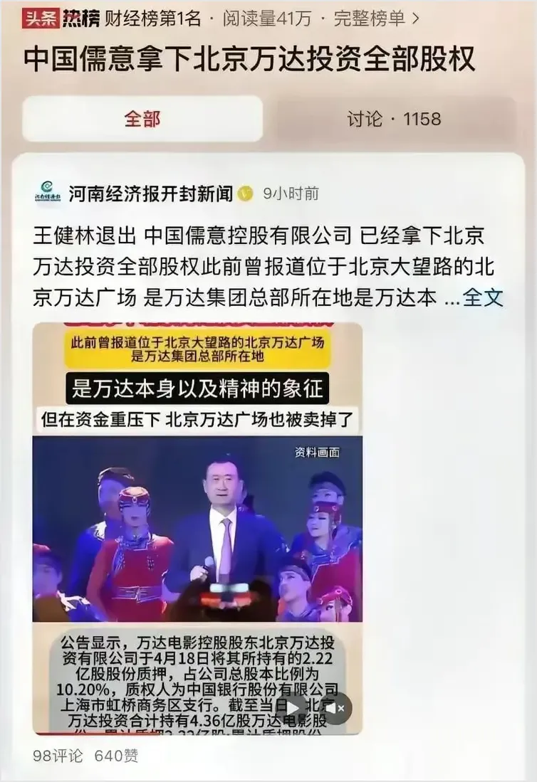 这一举动绝非小菜一碟,简直是商界的一场“大爆炸”!万达集团,曾经的商业巨人,此时又将何去何从?而新生力量崭露头角,中国儒意火热登场,接手万达集团的股权,成为商界的焦点。