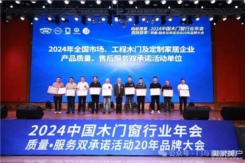 会议现场,发布了“2024年全国市场、工程木门及定制家居企业产品质量、售后服务双承诺活动单位”名单,并为“双承诺”活动单位颁发了荣誉牌。