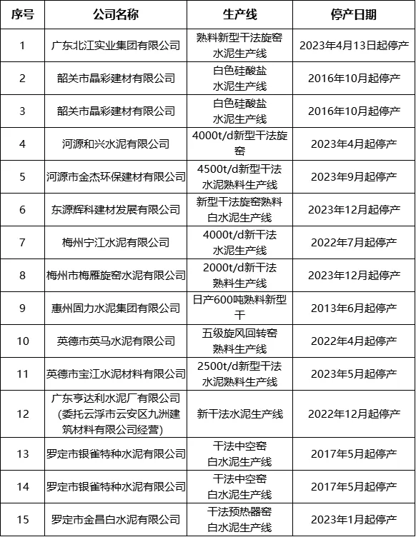 根据清单,共计15条水泥熟料生产线已停产。其中自2022年后停产的水泥熟料生产线共10条,占比66%。