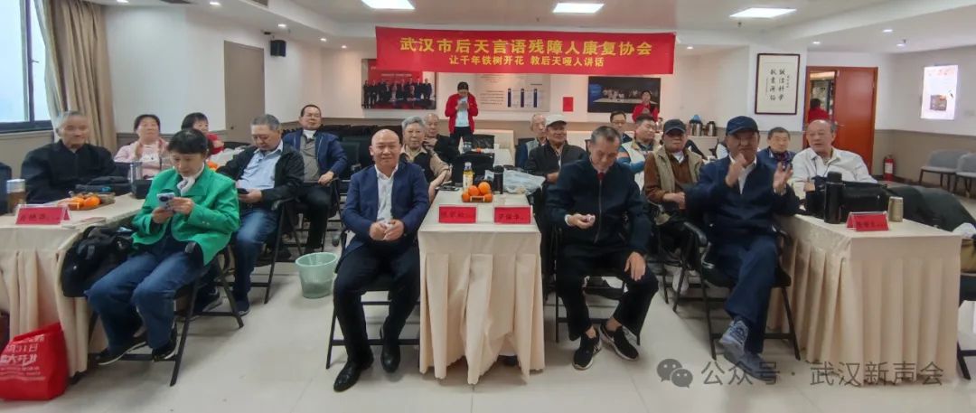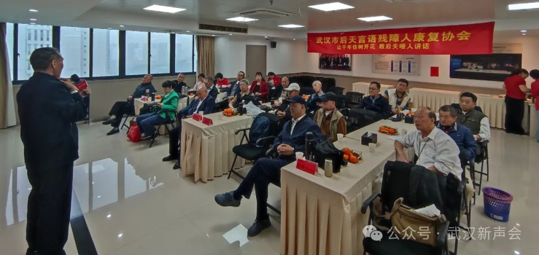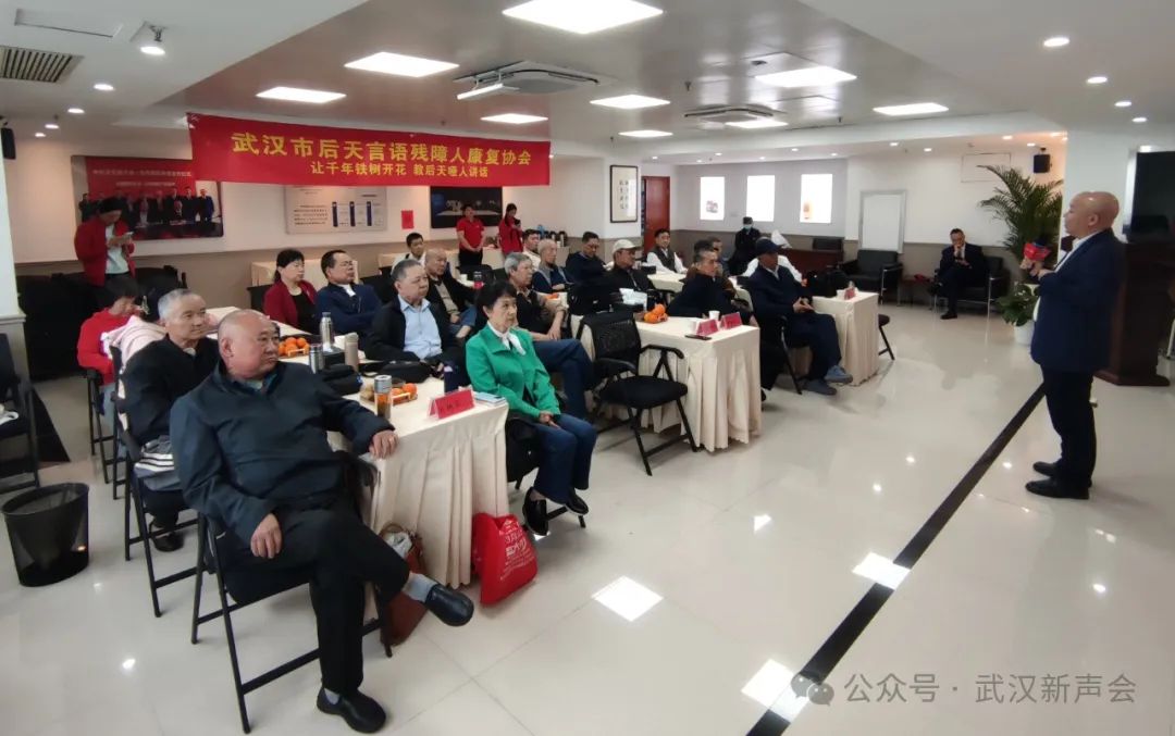 会议开始:武汉市后天言语残障人康复协会罗会长发表热情洋溢的讲话: