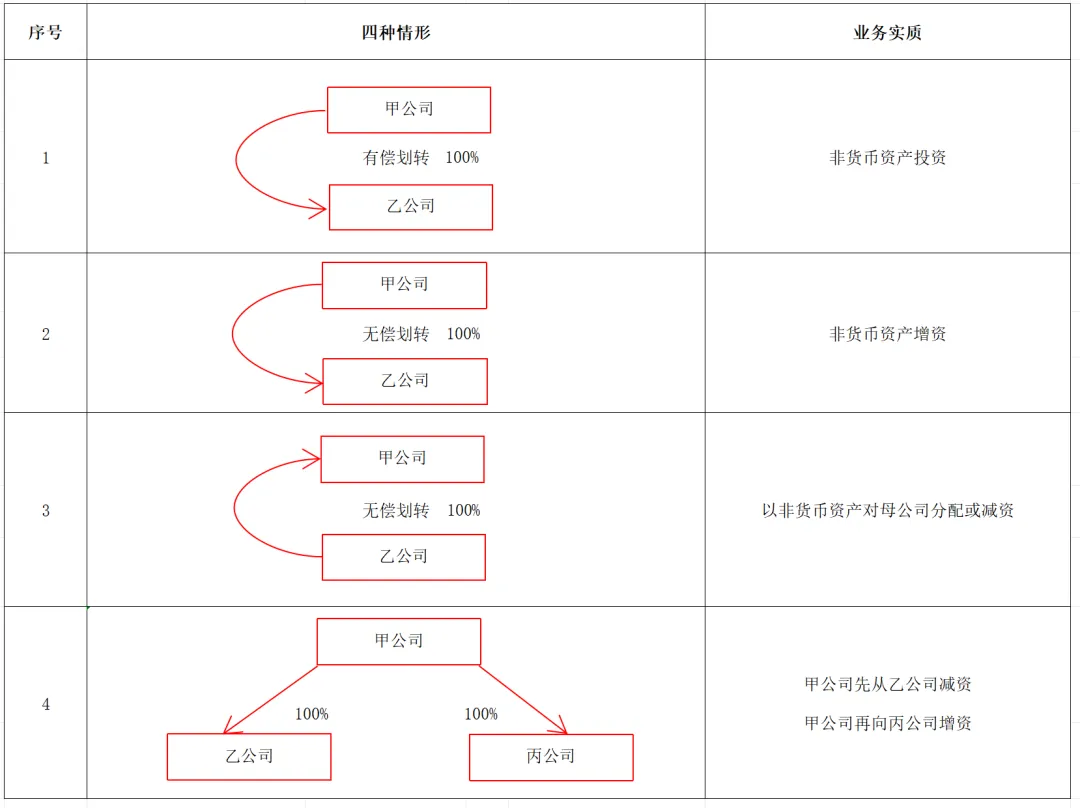 (2)100%直接控制的母子公司之间,母公司向子公司按账面净值划转其持有的股权或资产,母公司没有获得任何股权或非股权支付。母公司按冲减实收资本(包括资本公积,下同)处理,子公司按接受投资处理。