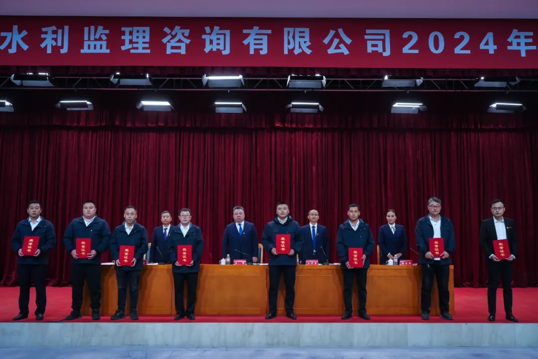 会上,公司副总经理张秀艳宣读了表彰2023年度优秀监理人员的决定。公司领导班子为8位获奖代表颁发荣誉证书。卢延武与职工代表签订廉政承诺书,公司总经理左明与职工代表签订质量责任书和安全生产责任书。