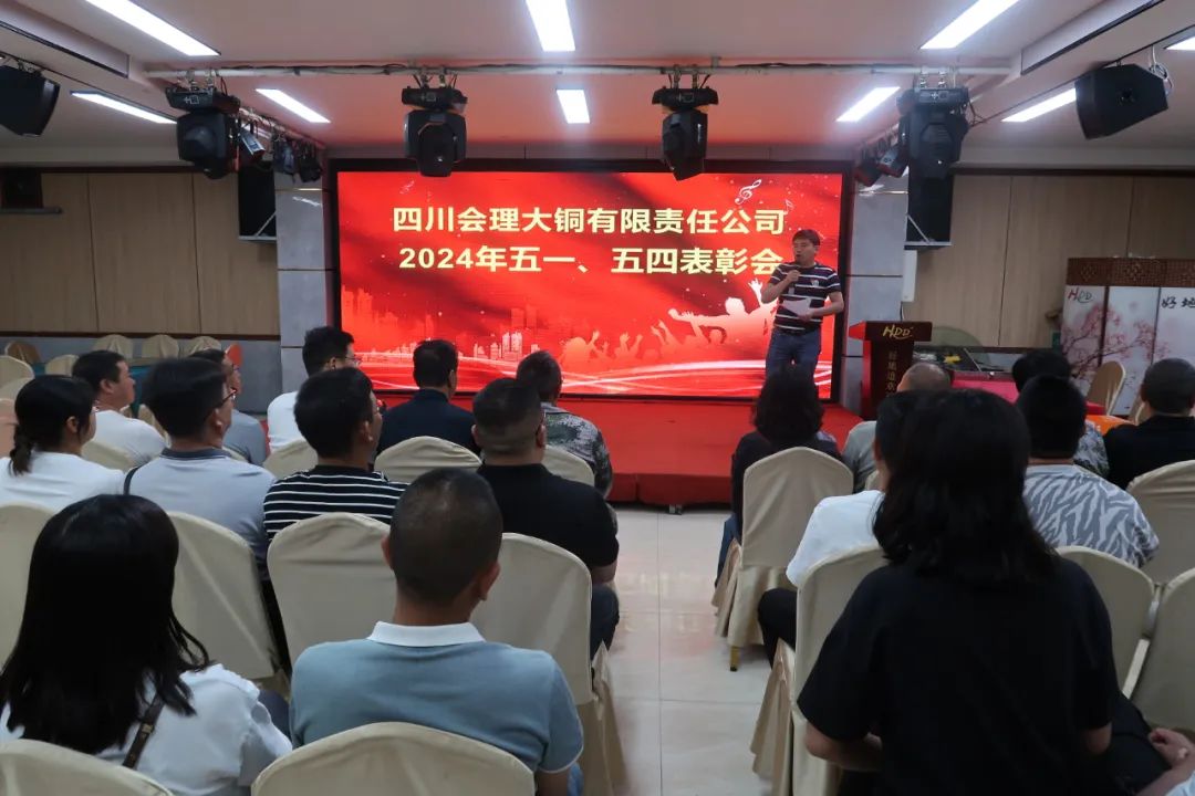 4月29日,公司在会理书画苑召开五一、五四表彰会,对荣获公司2023年度的先进基层工会、爱岗敬业标兵、优秀工会干部、优秀工会积极分子及先进青年进行表彰。