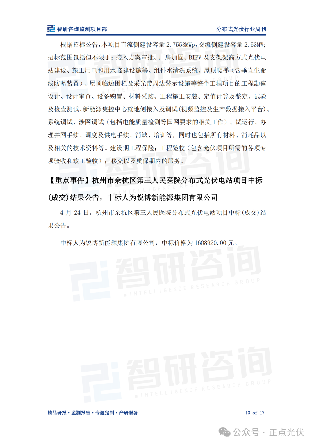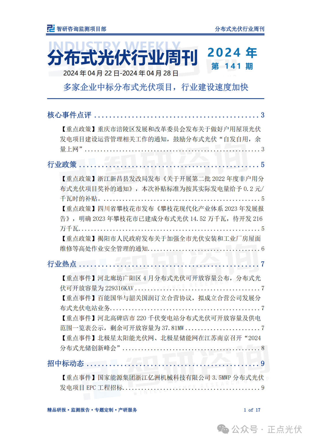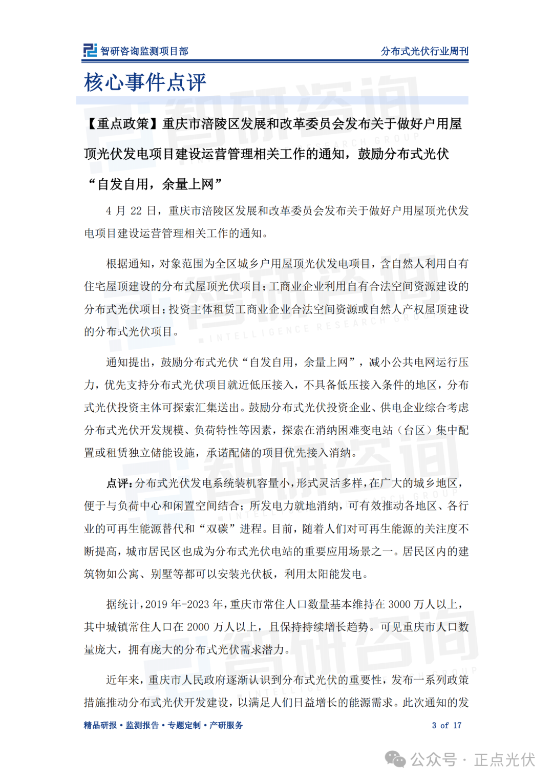 『研报』光伏行业周刊2024年第147期:重庆市涪陵区印发政策,促进户用屋顶光伏有序发展