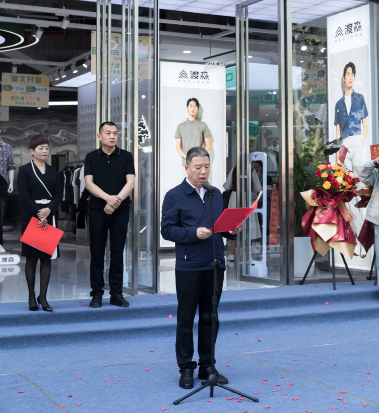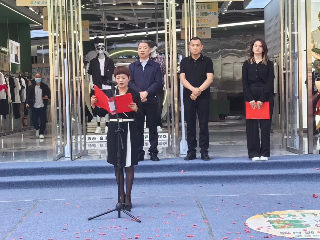 在开业典礼致辞中,郑州市中原区须水街道党工委书记王国杰代表须水街道党工委、办事处热诚欢迎越来越多的服装企业进驻渡森产业园、进驻须水街道,为繁荣中原区、须水街道的服装产业增砖添瓦。