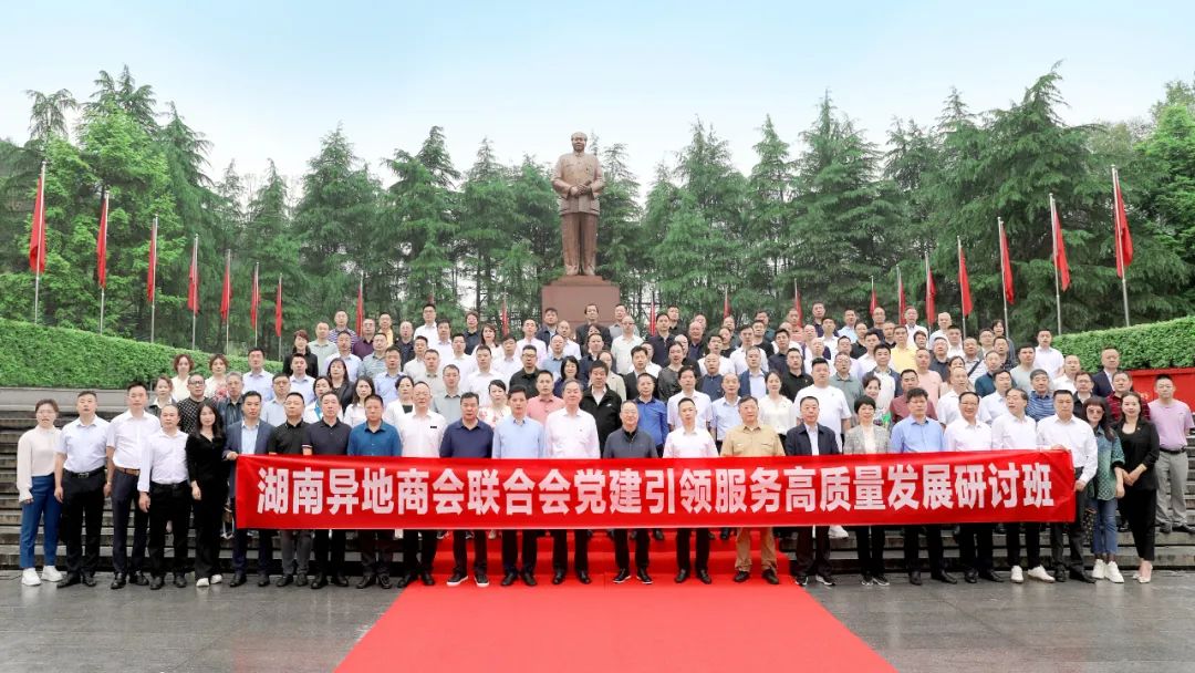 为学习贯彻党的二十大文件精神和党中央关于社会组织党建工作的重要指示及学习《中国共产党纪律处分条例》,落实湖南省民政厅《湖南省行业协会商会服务高质量发展专项行动实施方案》的通知,4月27日至29日,湖南异地商会联合会在韶山宾馆举办“党建引领,服务高质量发展”研讨班活动。本次研讨班活动中共湖南省委社会工作部、湖南省工商联、湖南省社会组织管理局,湖南省商务服务中心指导,湖南异地商会联合会主办,中共湖南异地商会联合会支部委员会、韶山宾馆、韶山市人民政府共同承办。来自全国20多个省市及海外异地湖南商会党组织书记及特邀嘉宾近200人参加研讨班活动。参加活动的主要领导有湖南省政协常委、湖南省工商联党组成员、副主席、商协会党委书记漆平波,湖南省韶山管理局党委委员、副局长付维华,湖南省商务厅原一级巡视员毛七星,韶山市委副书记刘志刚,以及湖南异地商会联合会会长李文喜、党建顾问毛永红等。作为湘籍商会党建工作的重要学习机会,贵州省湖南商会党支部高度重视,支部书记唐斌莅临现场全程参与了本次研讨班活动。李文喜会长在致辞中表示,本次研讨班的主要目的是牢记初心使命,传承红色基因,坚定理想信念,进一步突出政治建会,坚持党建引领。他号召各商会党组织要增强做好新时期商会党建工作的自觉性和责任感,促进党建会建有机融合,引领商会高质量发展。湖南科技大学研究生导师白晓波做了题为《睹主席遗物,学伟人风范,做合格党员》的党课宣讲。研讨班还分别在滴水洞和毛泽东同志故居现场开展了《滴水情深,风范长存》和《上屋场的心灵叩问》微课堂,组织向毛主席铜像敬献花篮,开展了以“我为主席家乡种棵树”为主题的班级活动。湖南省商务厅原一级巡视员毛七星要求,商会应加强党建引领,努力做到党的路线方针政策在商会中贯彻执行,商会理事会及会员大会按照章程合理合规运行,商会党支部要发挥“战斗堡垒”作用和党员发挥先锋模范、发挥指导作用和督促会员企业单位的发展等“四个确保”要求。
