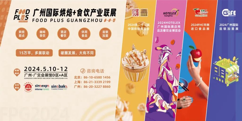 展会简介:新一届展会将强势扩容,与2024HOTELEX广州国际酒店用品及餐饮业博览会、2024FHC华南进口食品展以及2024广州国际连锁加盟展多展联动举办。“破圈发展”,致力于为中国食饮行业上下游产业链企业提供更大的信息、贸易交流服务平台。